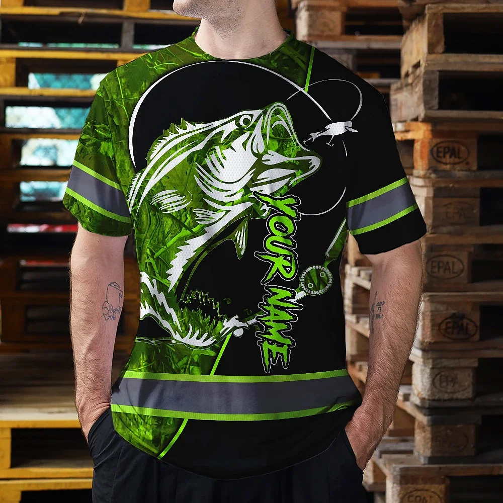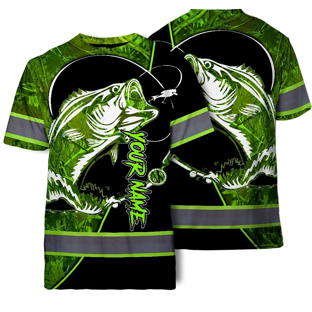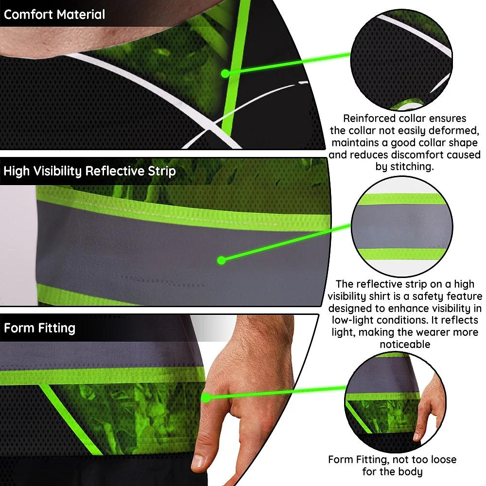 Hi Vis Shirt Reflective Tapes Green Bass Fish Fishing Safety Workwear For Fishing Lovers Workers, Runners, Cyclists, Trucker, Operator, Patriotic