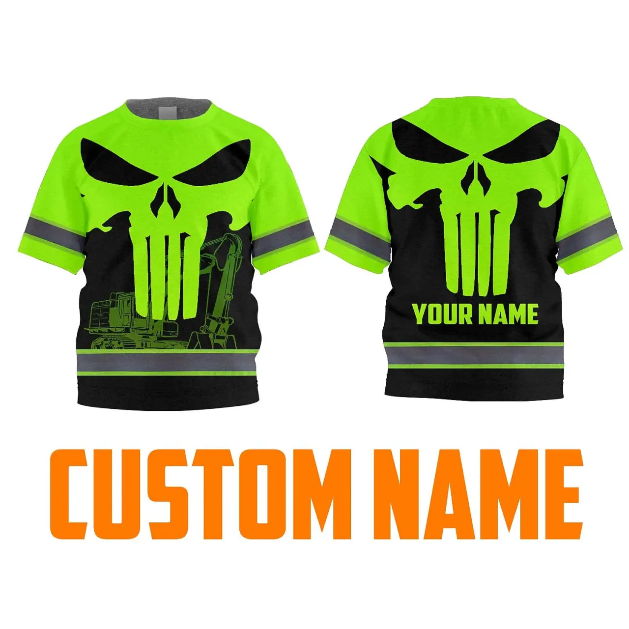 Hi Vis Shirt Reflective Tapes Green Excavator Operator Custom Name For Kids
