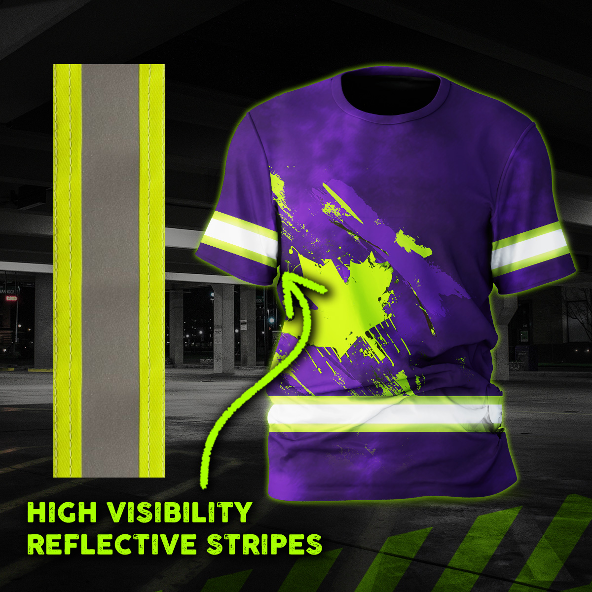 Hi Vis Shirt Reflective Tapes Green Neon And Violet Canada Flag