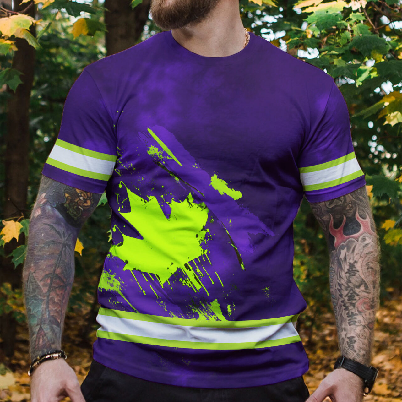Be the first to review “Hi Vis Shirt Reflective Tapes Green Neon And Violet Canada Flag”