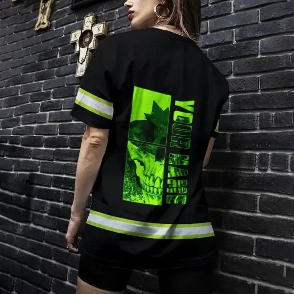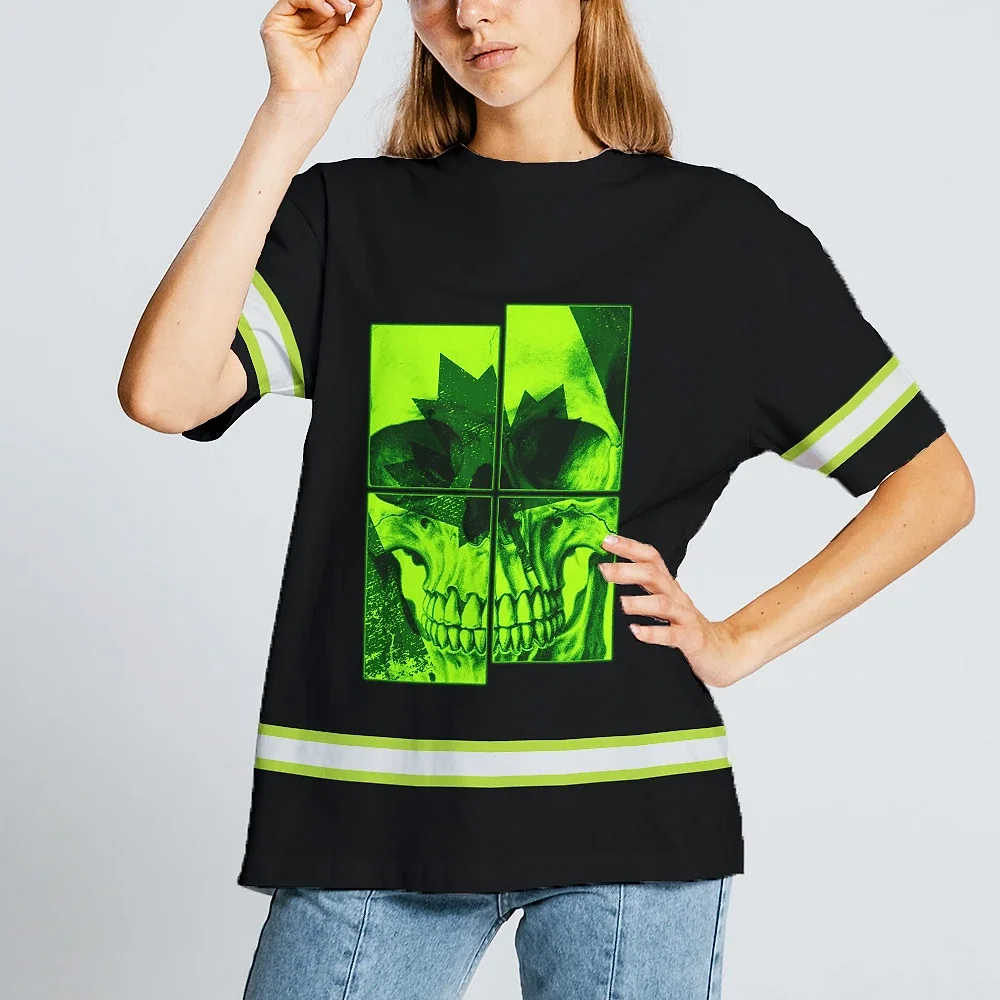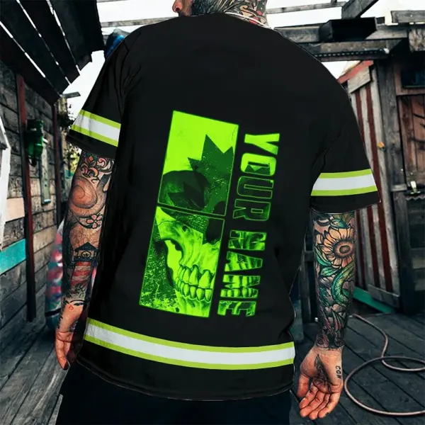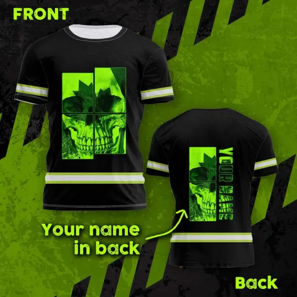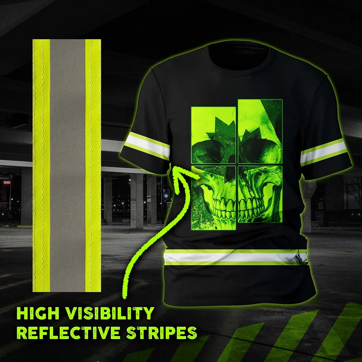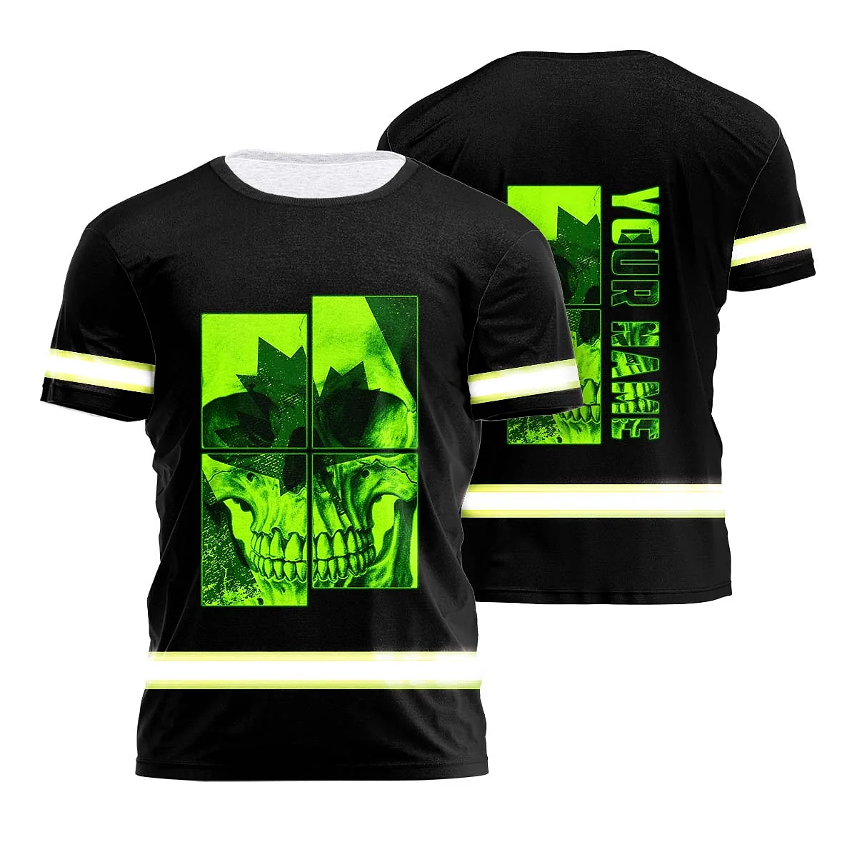 Hi Vis Shirt Reflective Tapes Green Neon Black And Canada Flag Skull Custom Name Safety Workwear For Worker, Operator, Patriotic