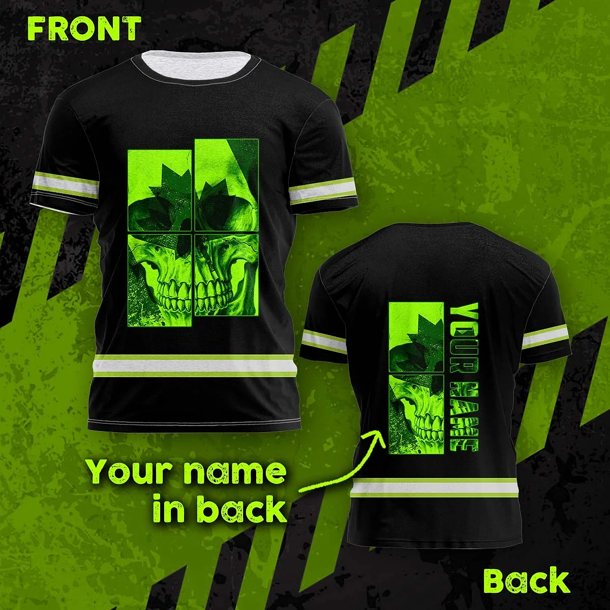 Be the first to review “Hi Vis Shirt Reflective Tapes Green Neon Black And Canada Flag Skull Custom Name Safety Workwear For Worker, Operator, Patriotic”