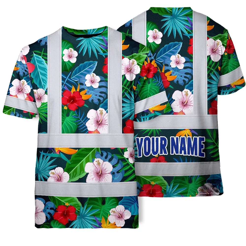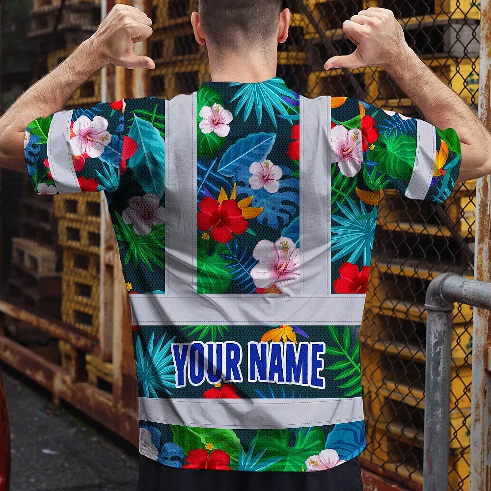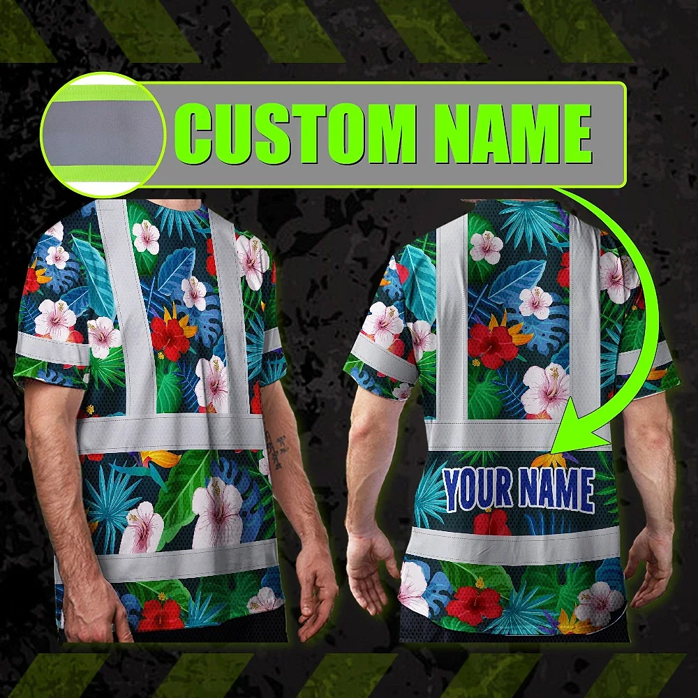 Hi Vis Shirt Reflective Tapes Neon Pink Flowers Custom Name