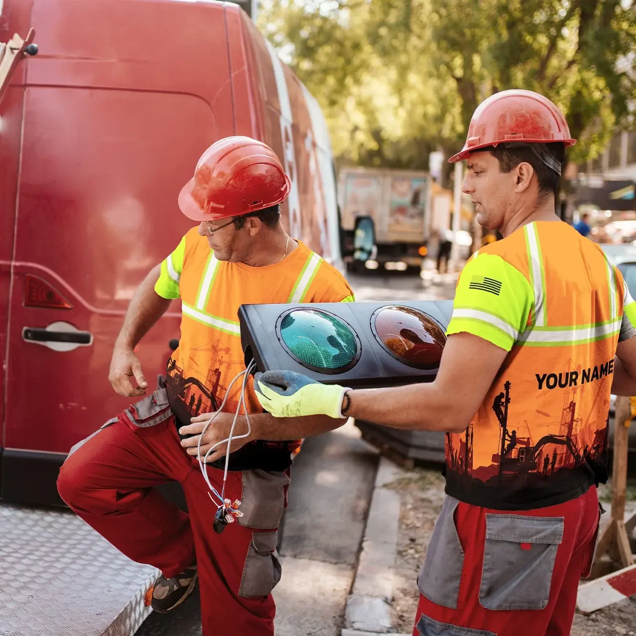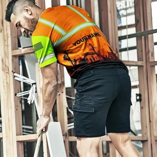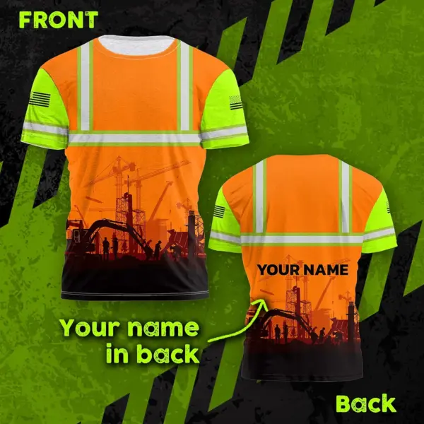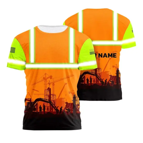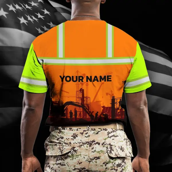 Hi Vis Shirt Reflective Tapes Orange Green Neon Construction US Flag Custom Name Safety Workwear For Workers, Runners