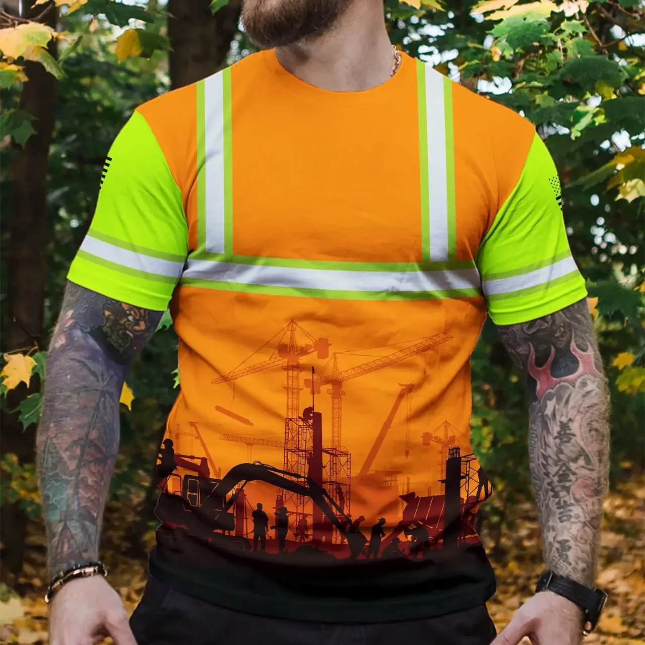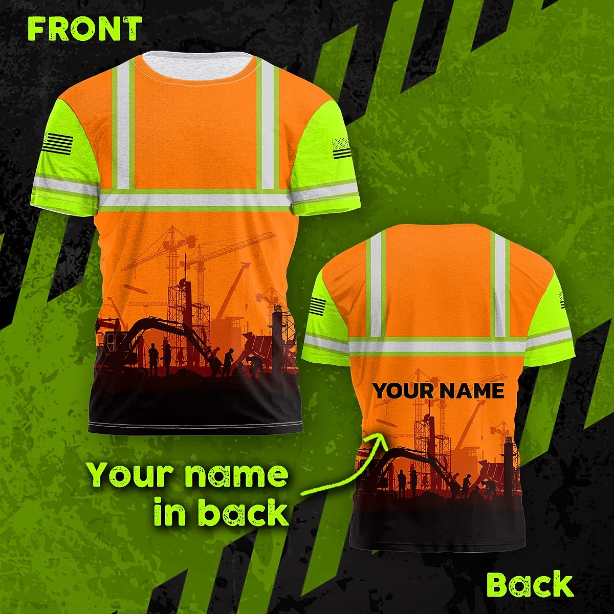Be the first to review “Hi Vis Shirt Reflective Tapes Orange Green Neon Construction US Flag Custom Name Safety Workwear For Workers, Runners”