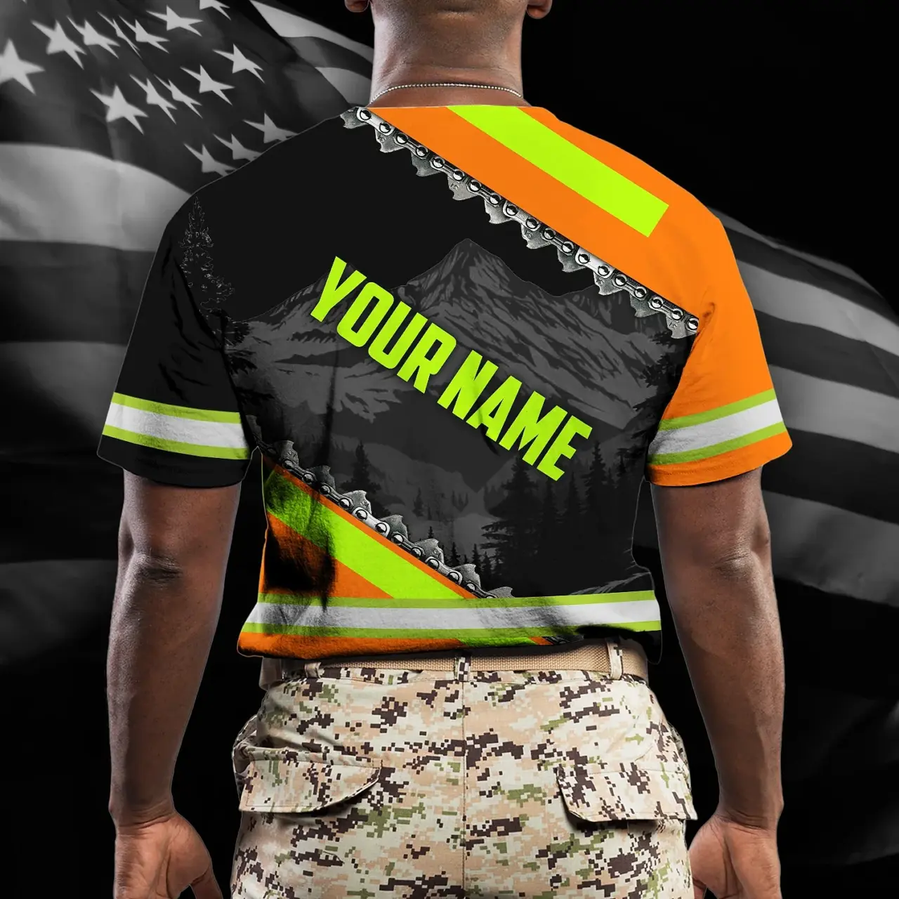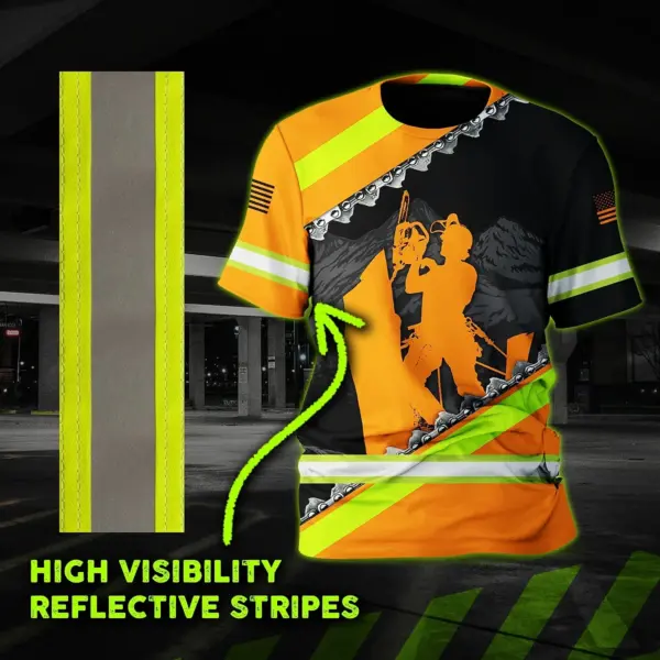 Hi Vis Shirt Reflective Tapes Orange Neon Chainsaw US Flag Custom Name Safety Workwear For Workers, Runners
