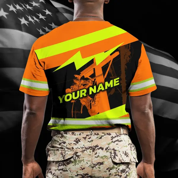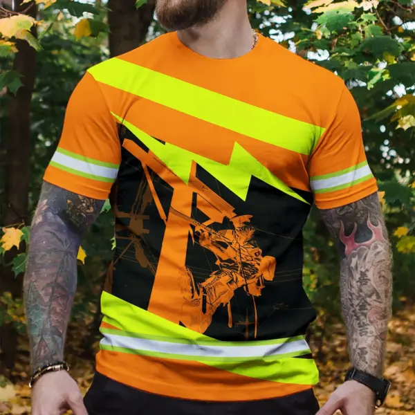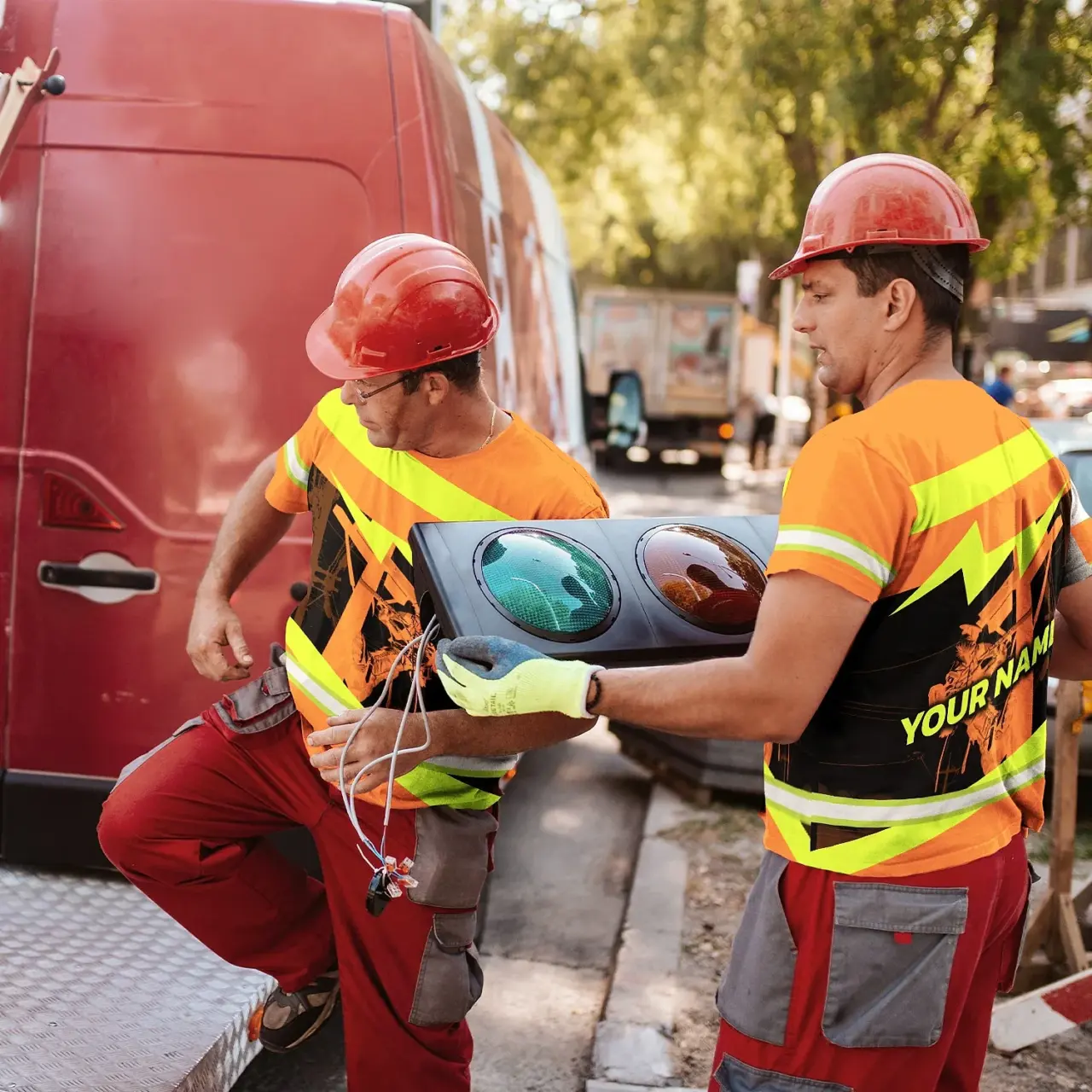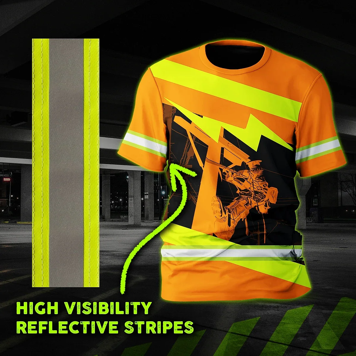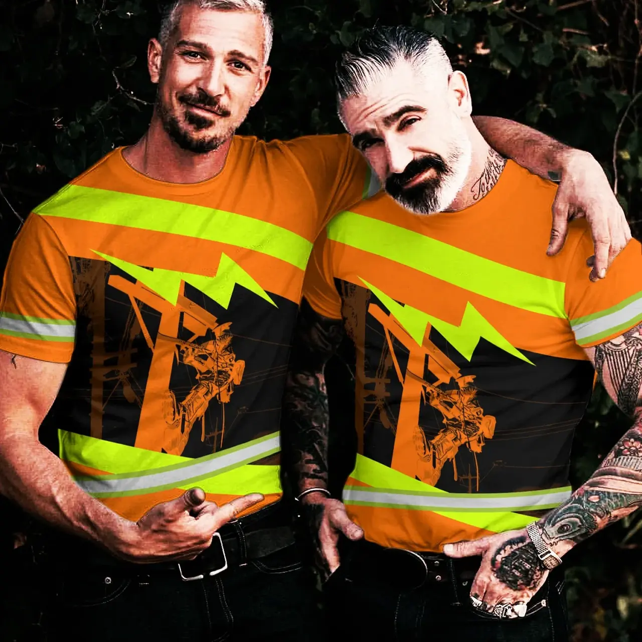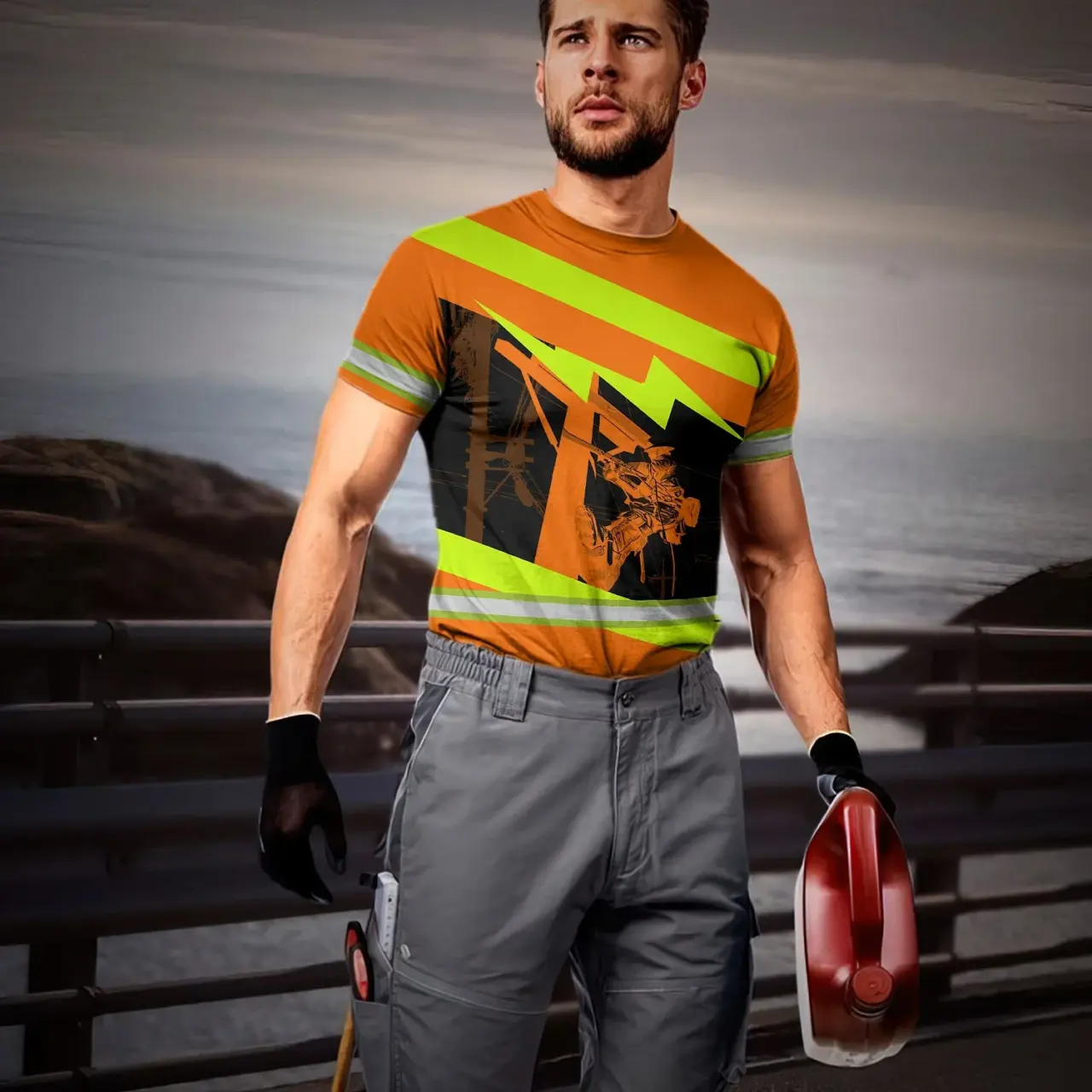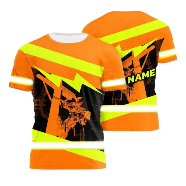 Hi Vis Shirt Reflective Tapes Orange Neon Electrician Custom Name Safety Workwear For Workers, Runners