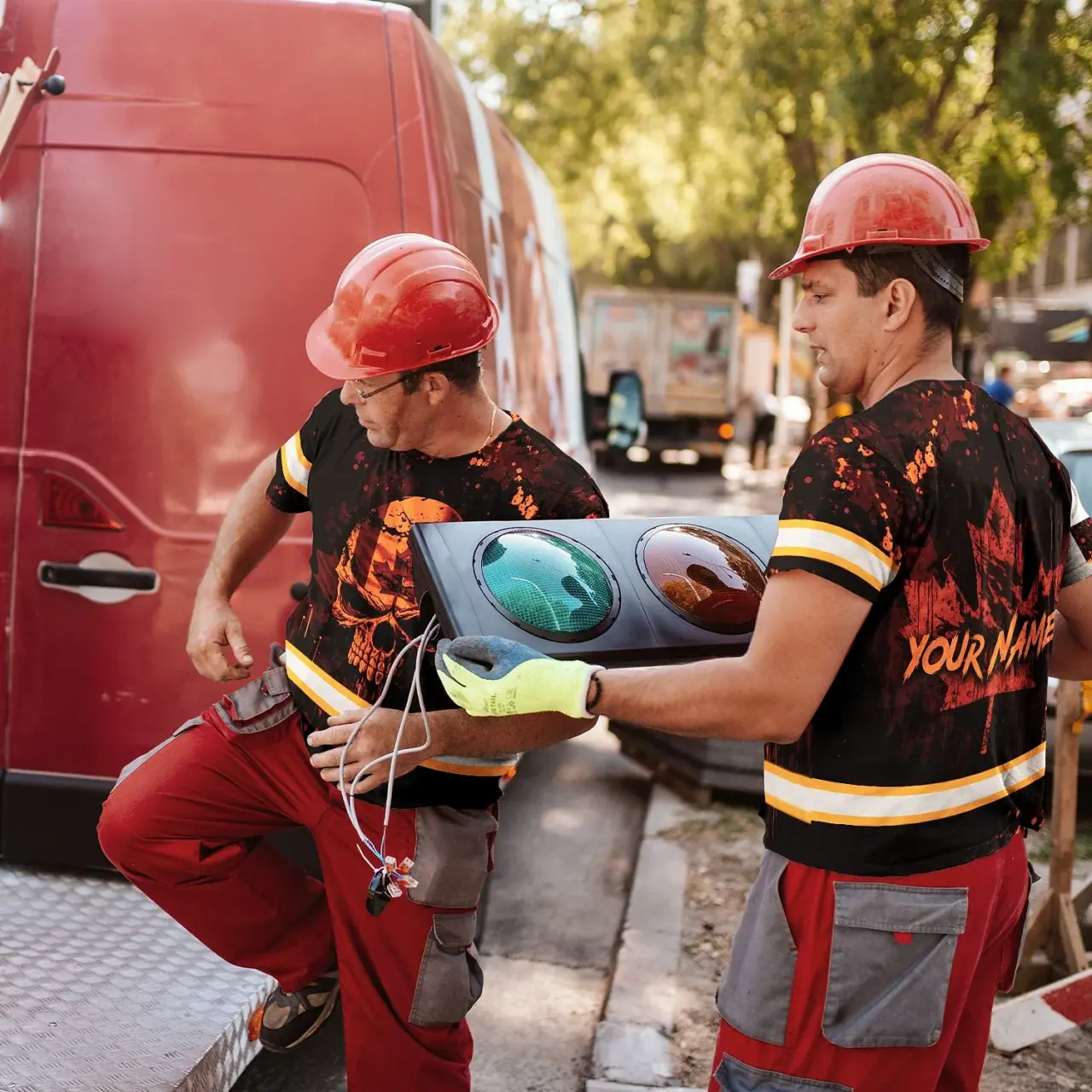 Select options This product has multiple variants. The options may be chosen on the product pageHi Vis Shirt Reflective Skull With US Flag Custom Name Safety Workwear For Skull Lover