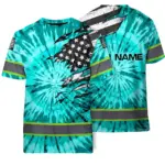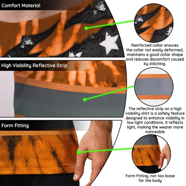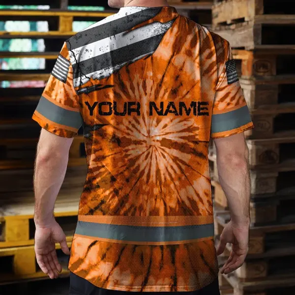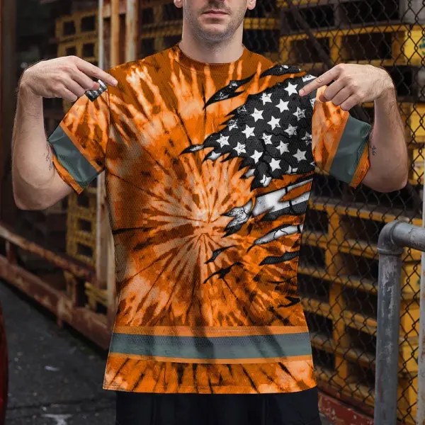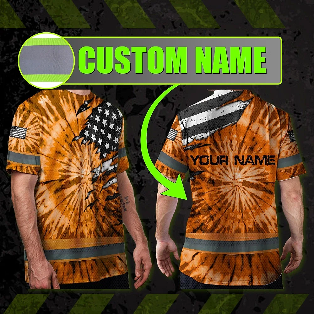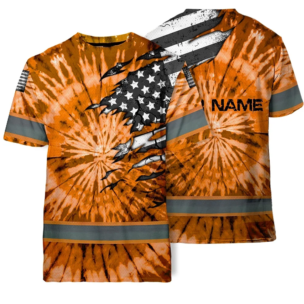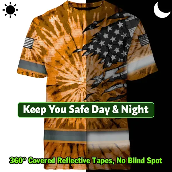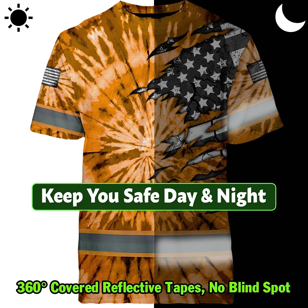 Hi Vis Shirt Reflective Tapes Orange Tie Dye US Flag Scratch Custom Name Safety Workwear For Workers, Runners, Cyclists
