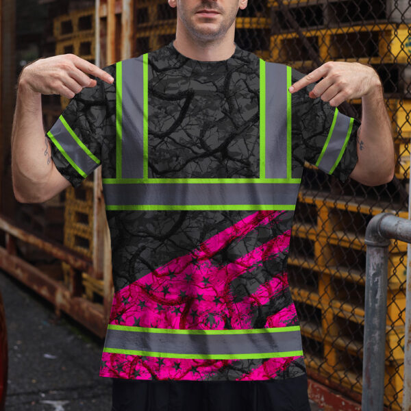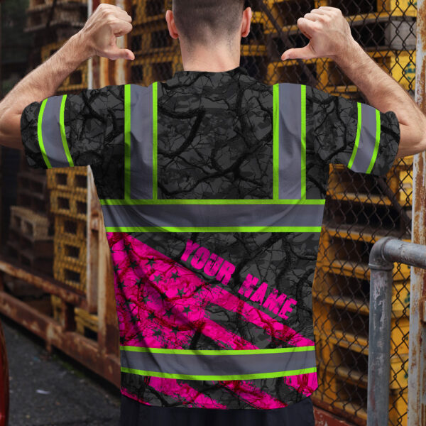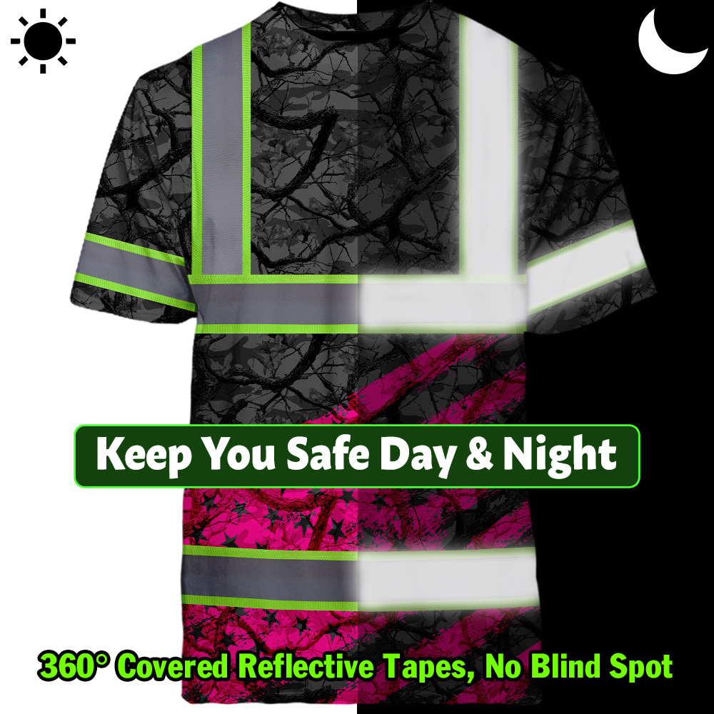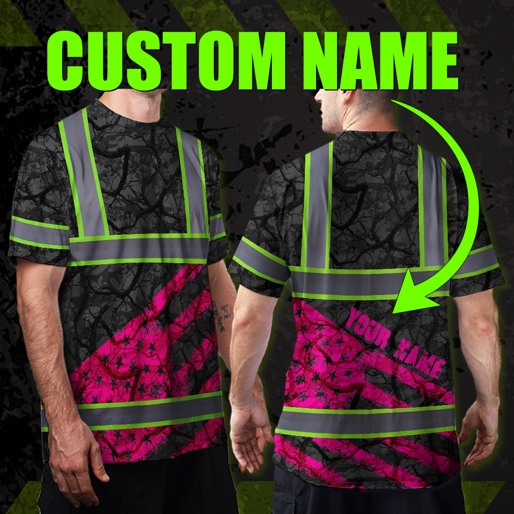 Hi Vis Shirt Reflective Tapes Pink Camo Neon US Flag Custom Name
