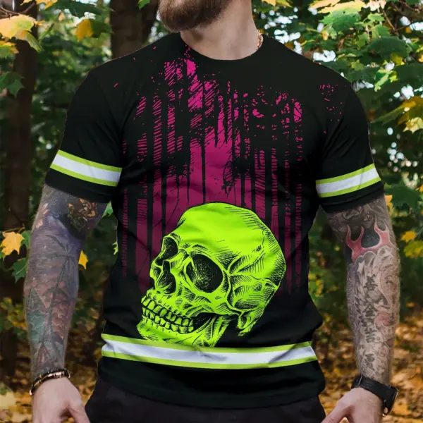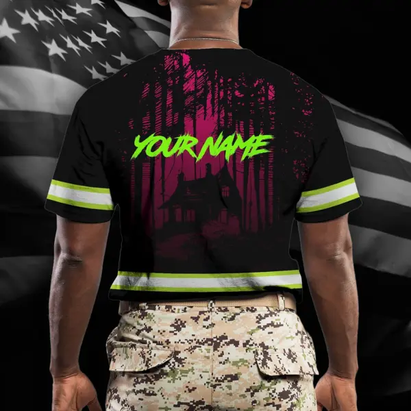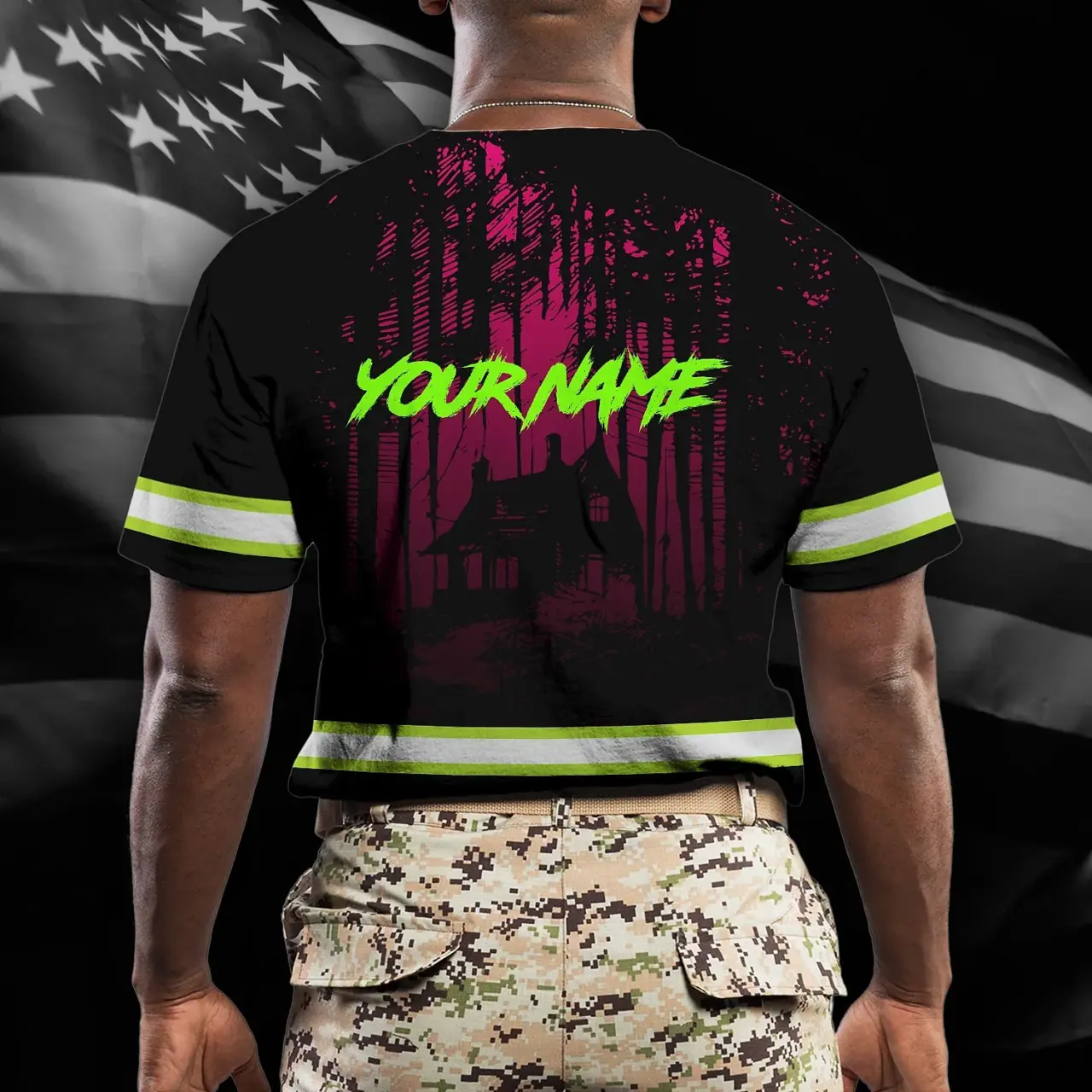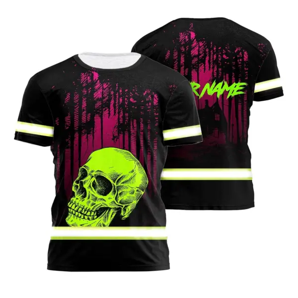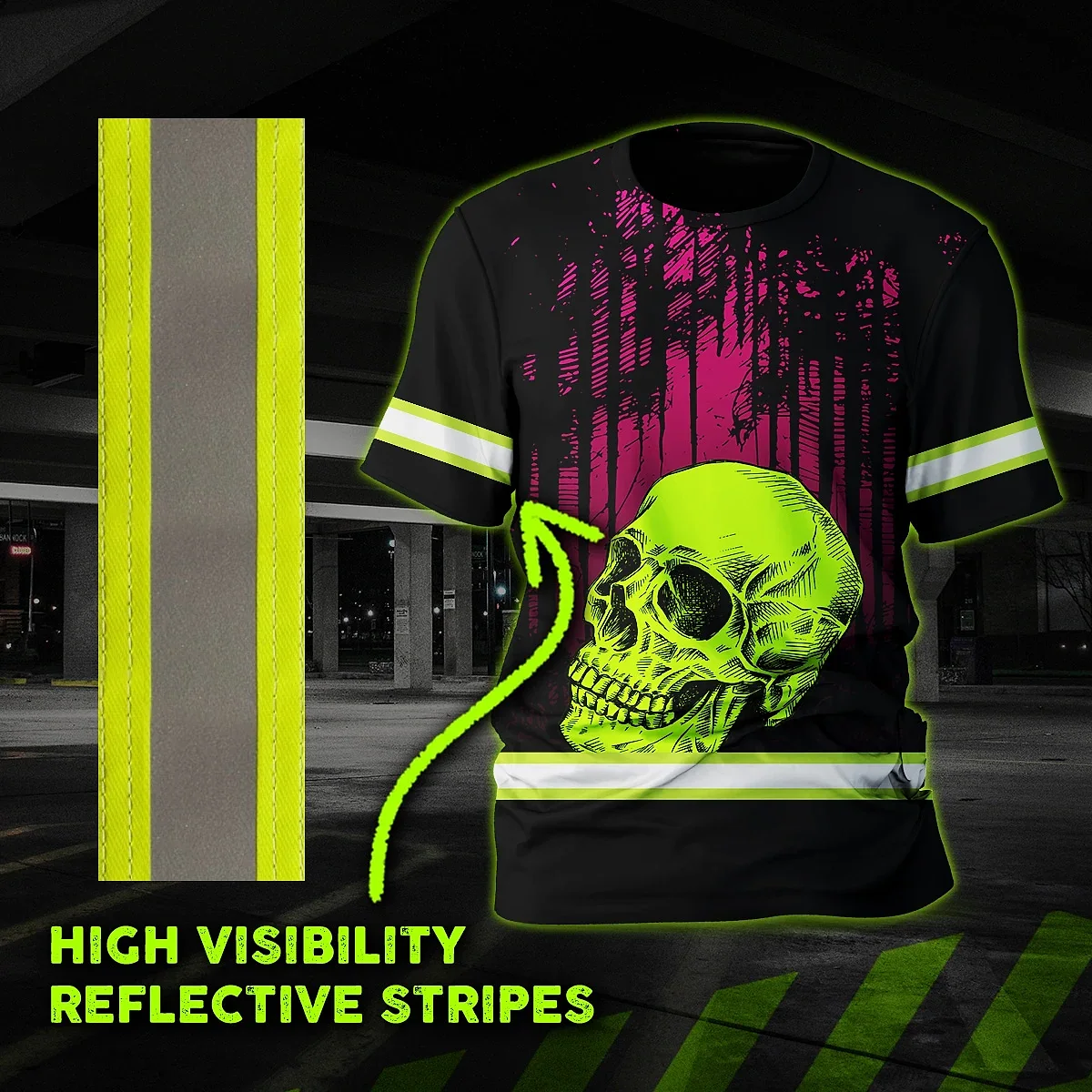 Hi Vis Shirt Reflective Tapes Pink Forest Green Skull Custom Name Safety Workwear For Workers, Truckers, Operators