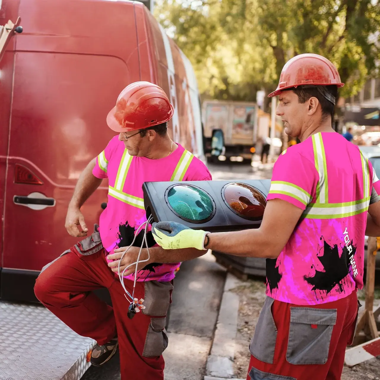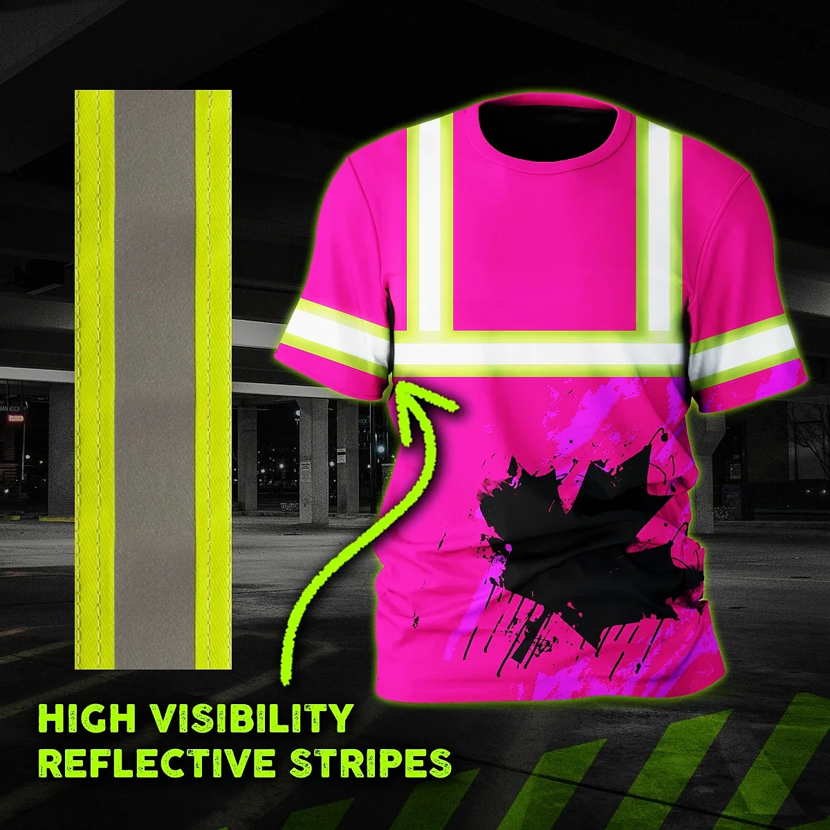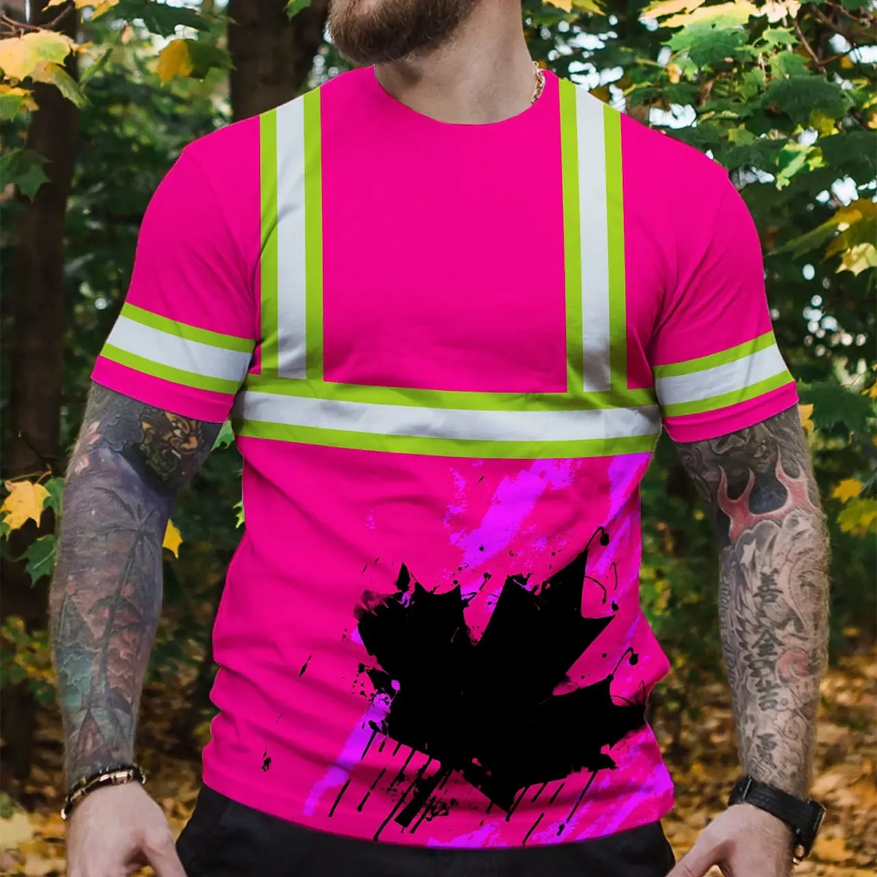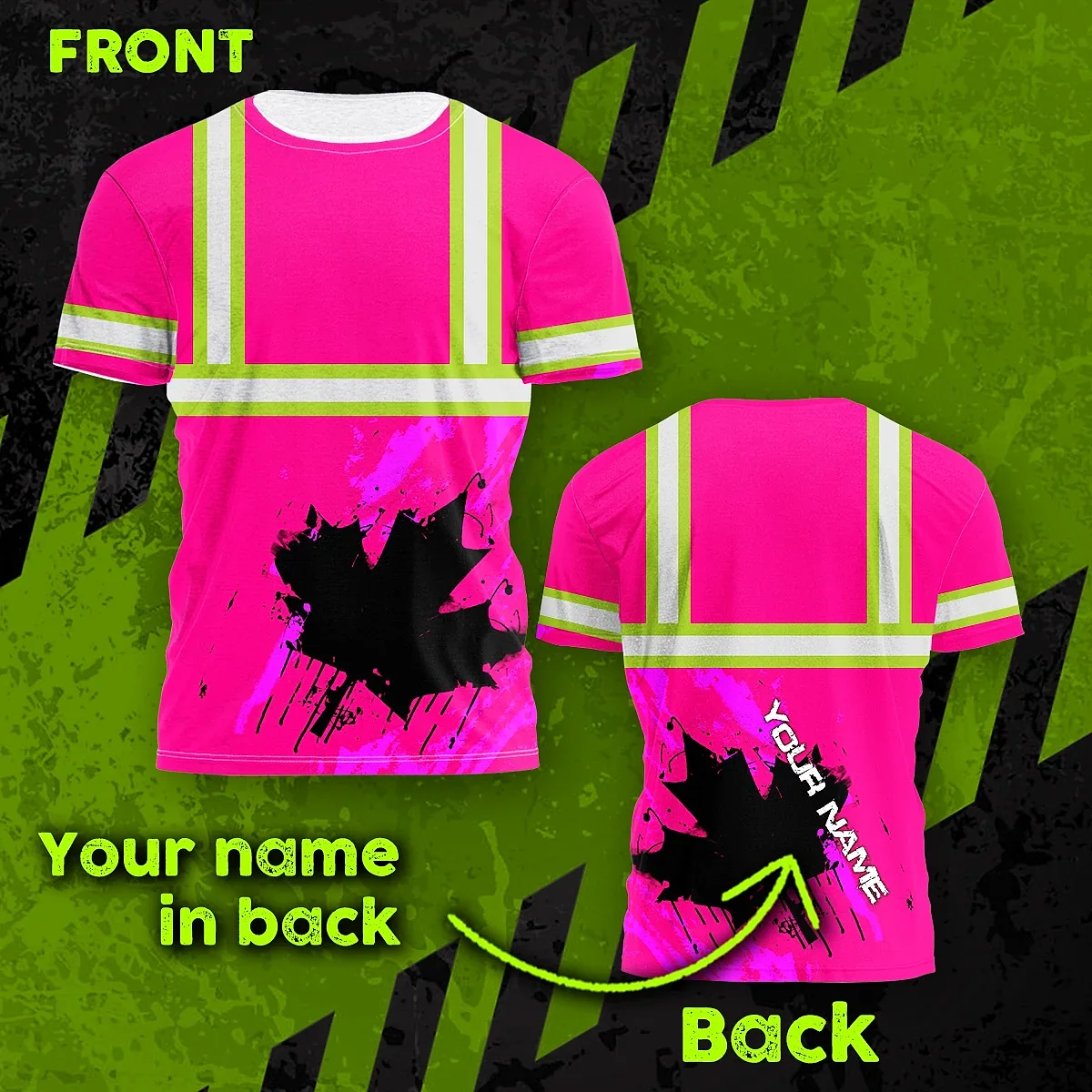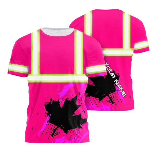 Hi Vis Shirt Reflective Tapes Pink Neon Canada Flag Custom Name Safety Workwear For Worker, Operator, Patriotic