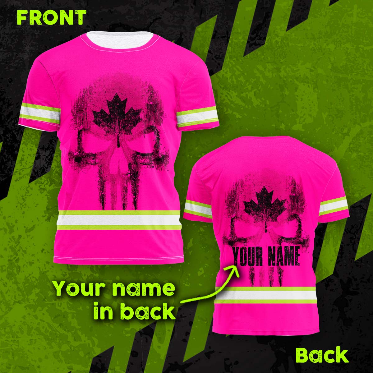 Hi Vis Shirt Reflective Tapes Pink Neon Canada Flag Custom Name