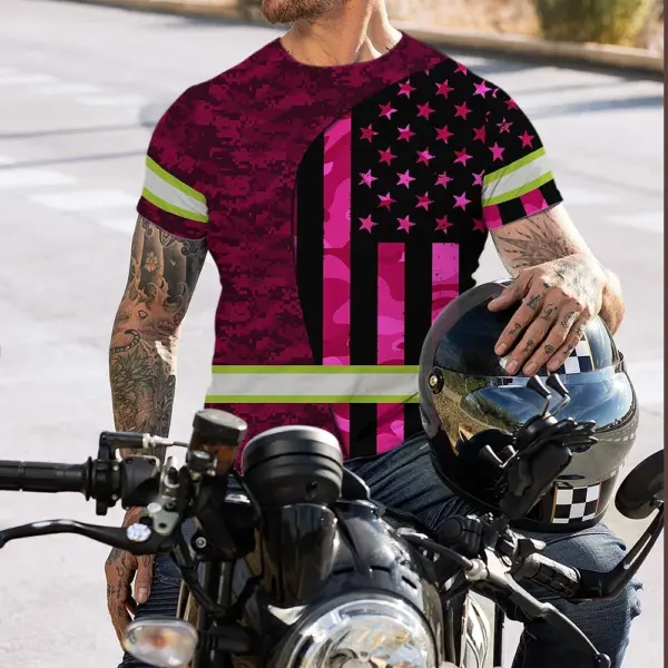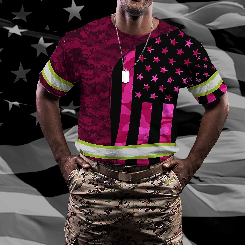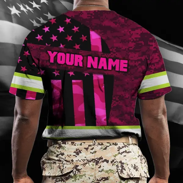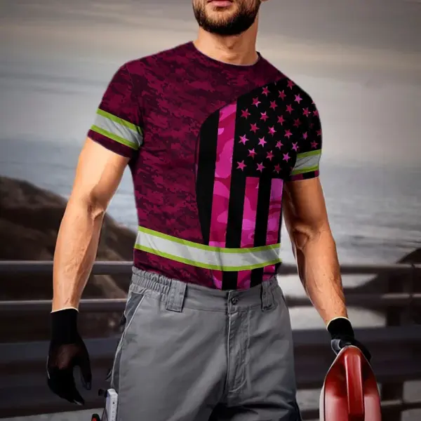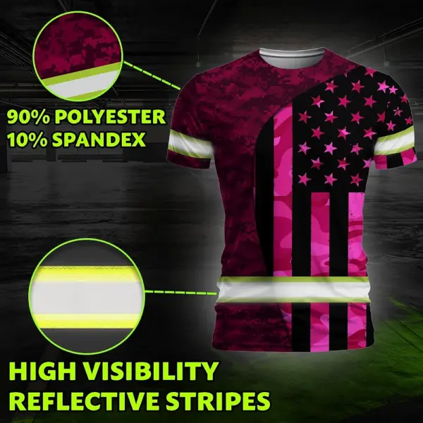Hi Vis Shirt Reflective Tapes Pink Neon US Flag Camo Custom Name Safety Workwear For Workers, Runners, Cyclists