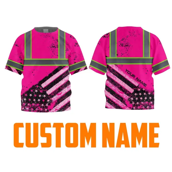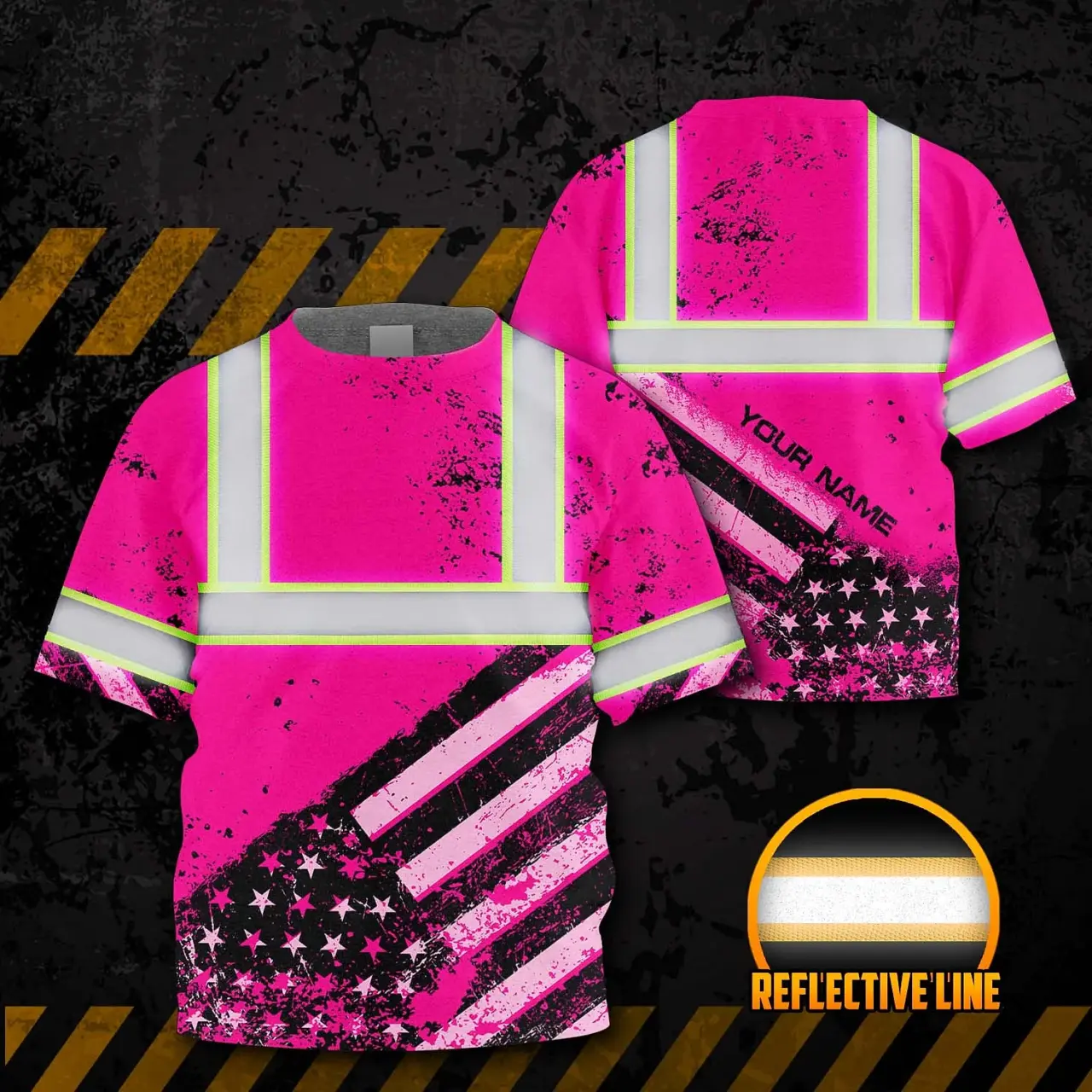 Hi Vis Shirt Reflective Tapes Pink US Flag Paint Custom Name For Kids