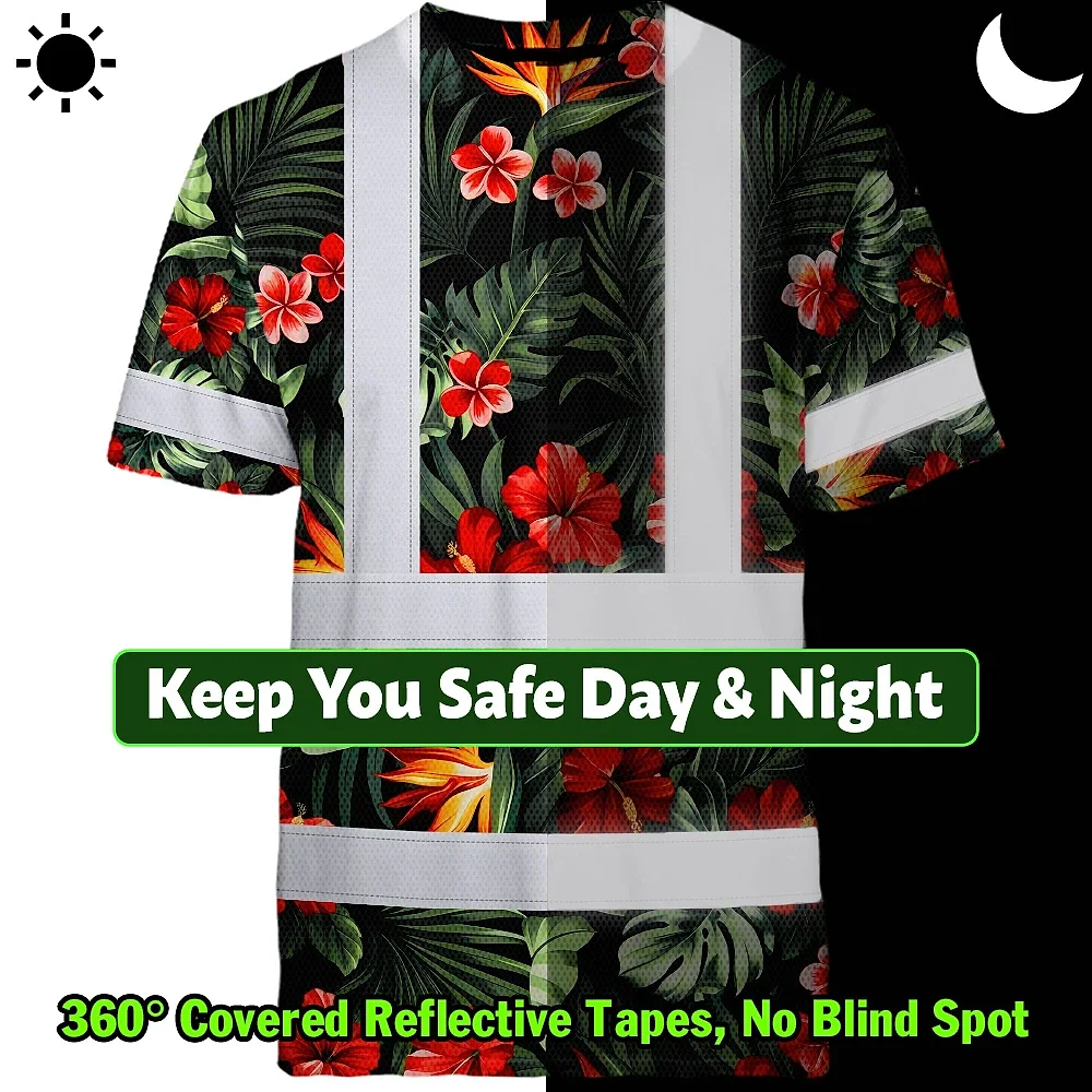 Be the first to review “Hi Vis Shirt Reflective Tapes Red Neon Flowers Custom Name Safety Workwear For Workers, Truckers, Operators”