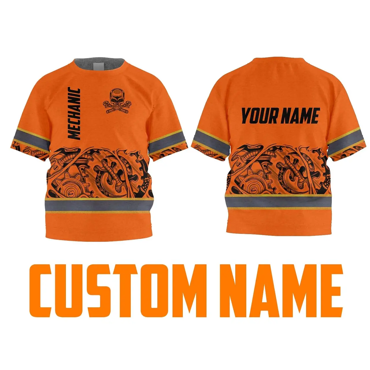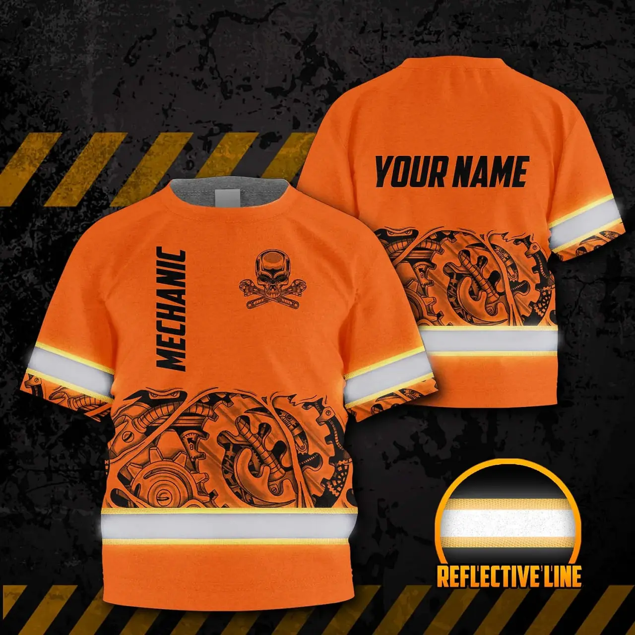 Hi Vis Shirt Reflective Tapes Skull Mechanic Custom Name For Kids