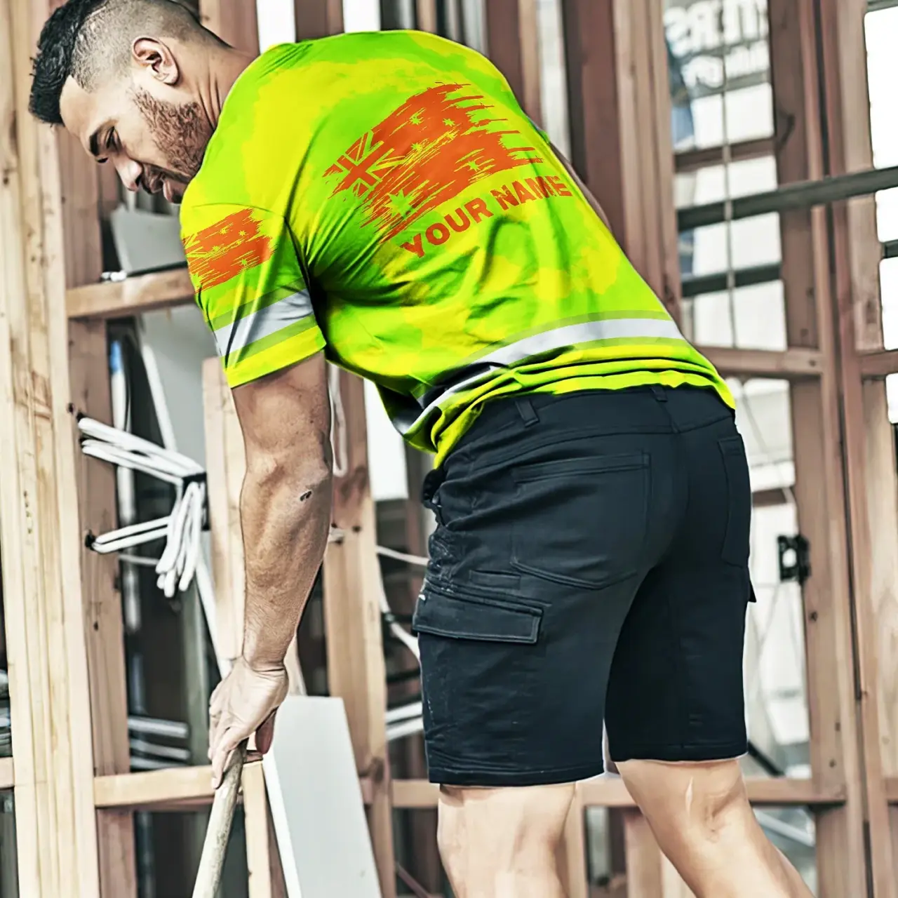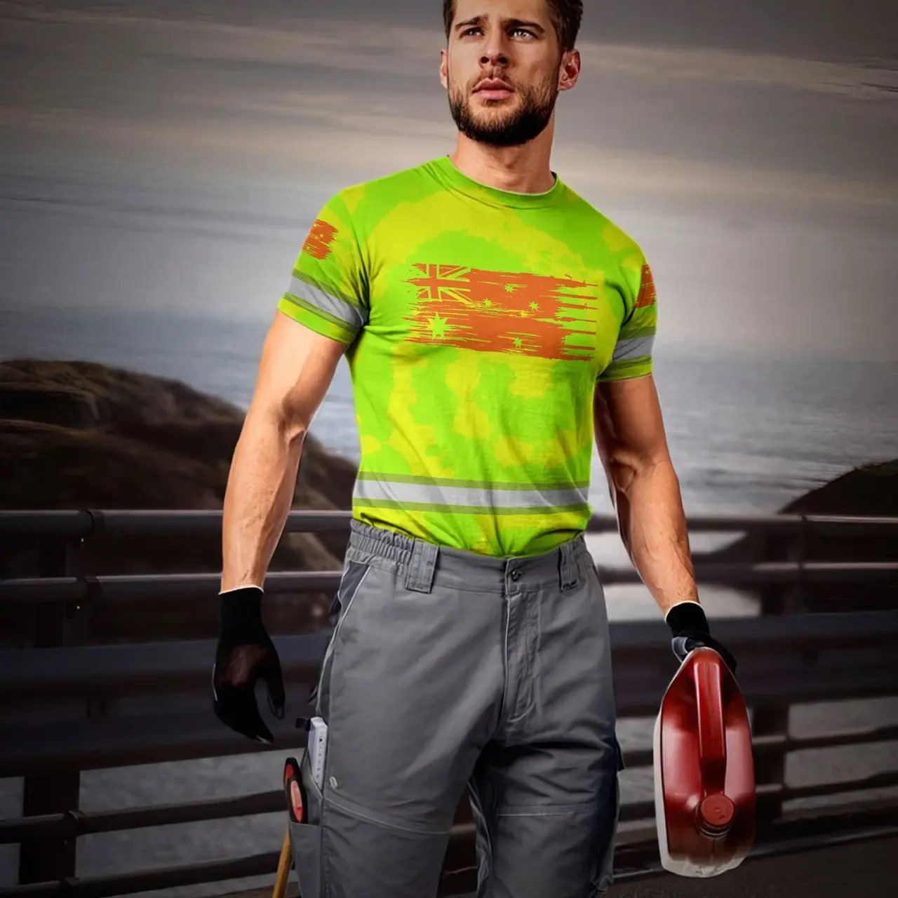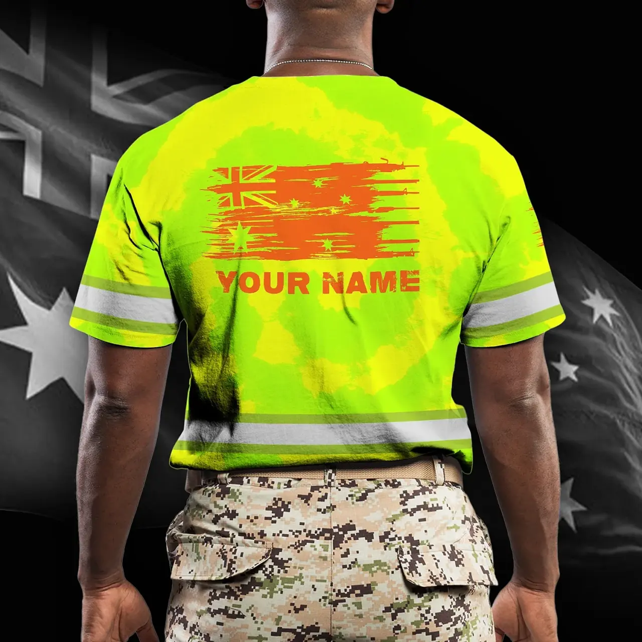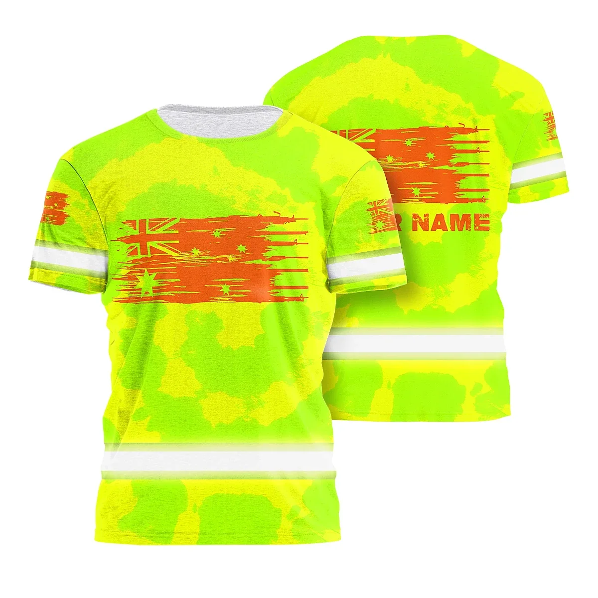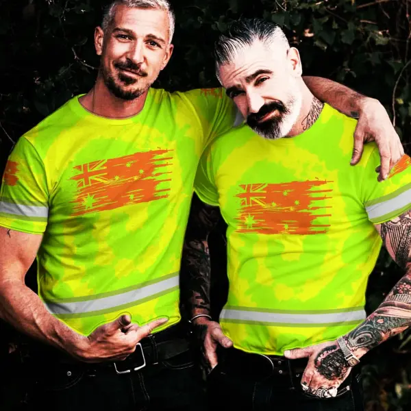 Hi Vis Shirt Reflective Tapes Tie Dye Green And Orange Australia Flag