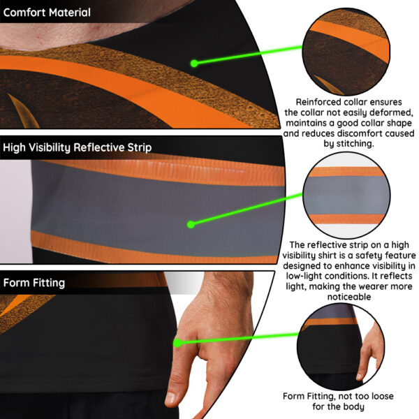 • Hi Vis Shirt Reflective Tapes Uniform Black Orange Neon Custom Name And Logo Safety Workwear For Workers, Teams, Group, Company