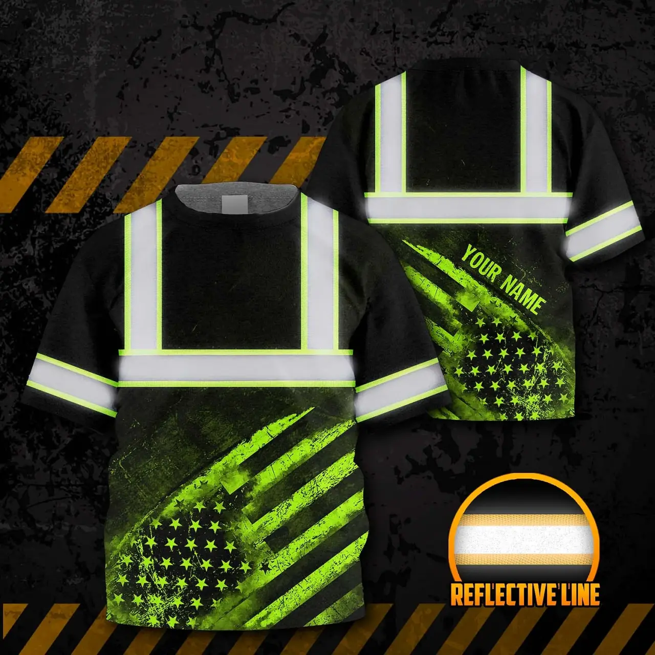 Hi Vis Shirt Reflective Tapes US Flag Custom Name For Kids