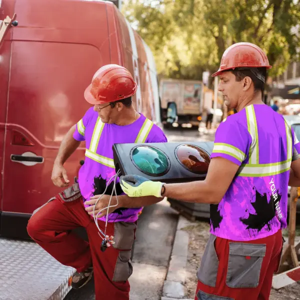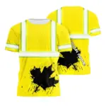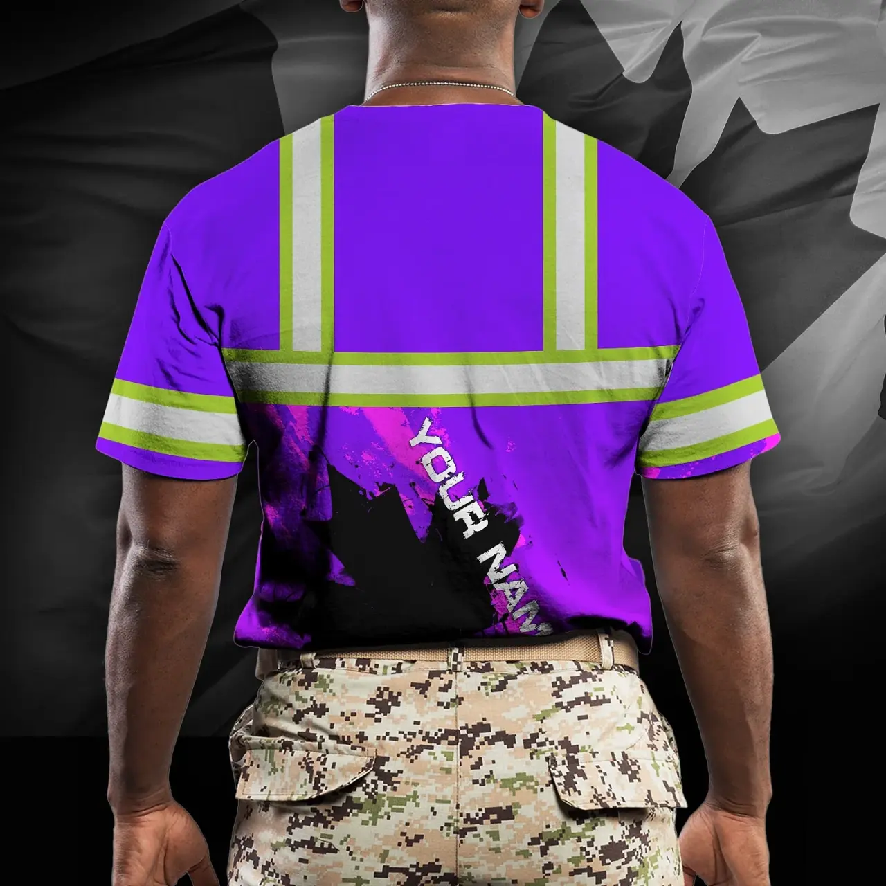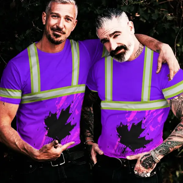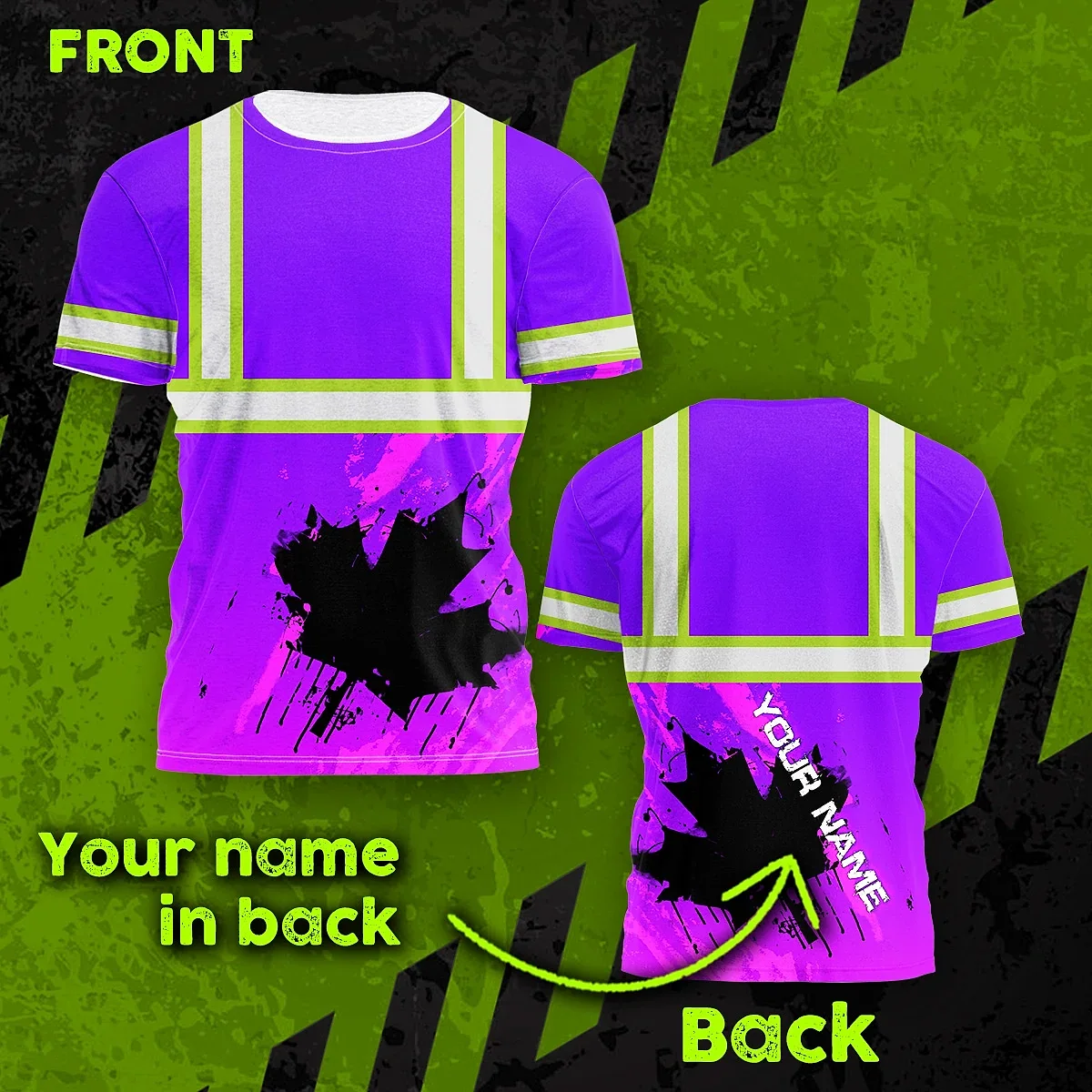 Hi Vis Shirt Reflective Tapes Violet Neon Canada Flag Custom Name Safety Workwear For Worker, Operator, Patriotic