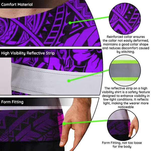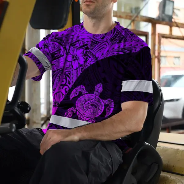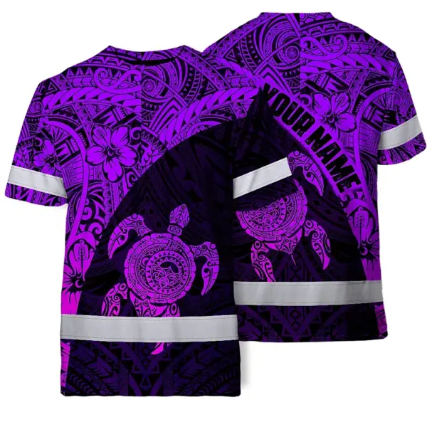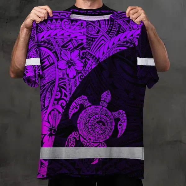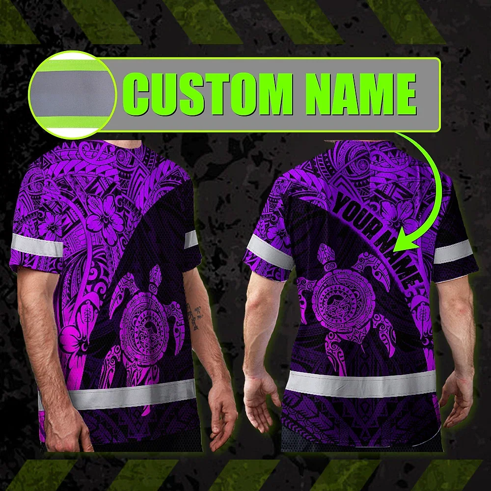 Hi Vis Shirt Reflective Tapes Violet Neon Turtle Hawaiian Polynesian Tribal