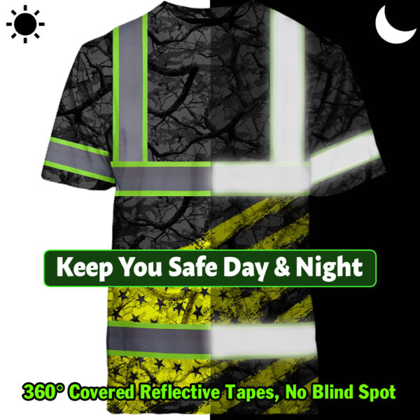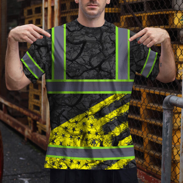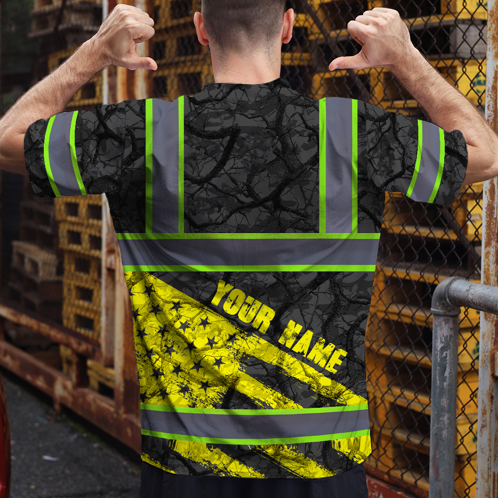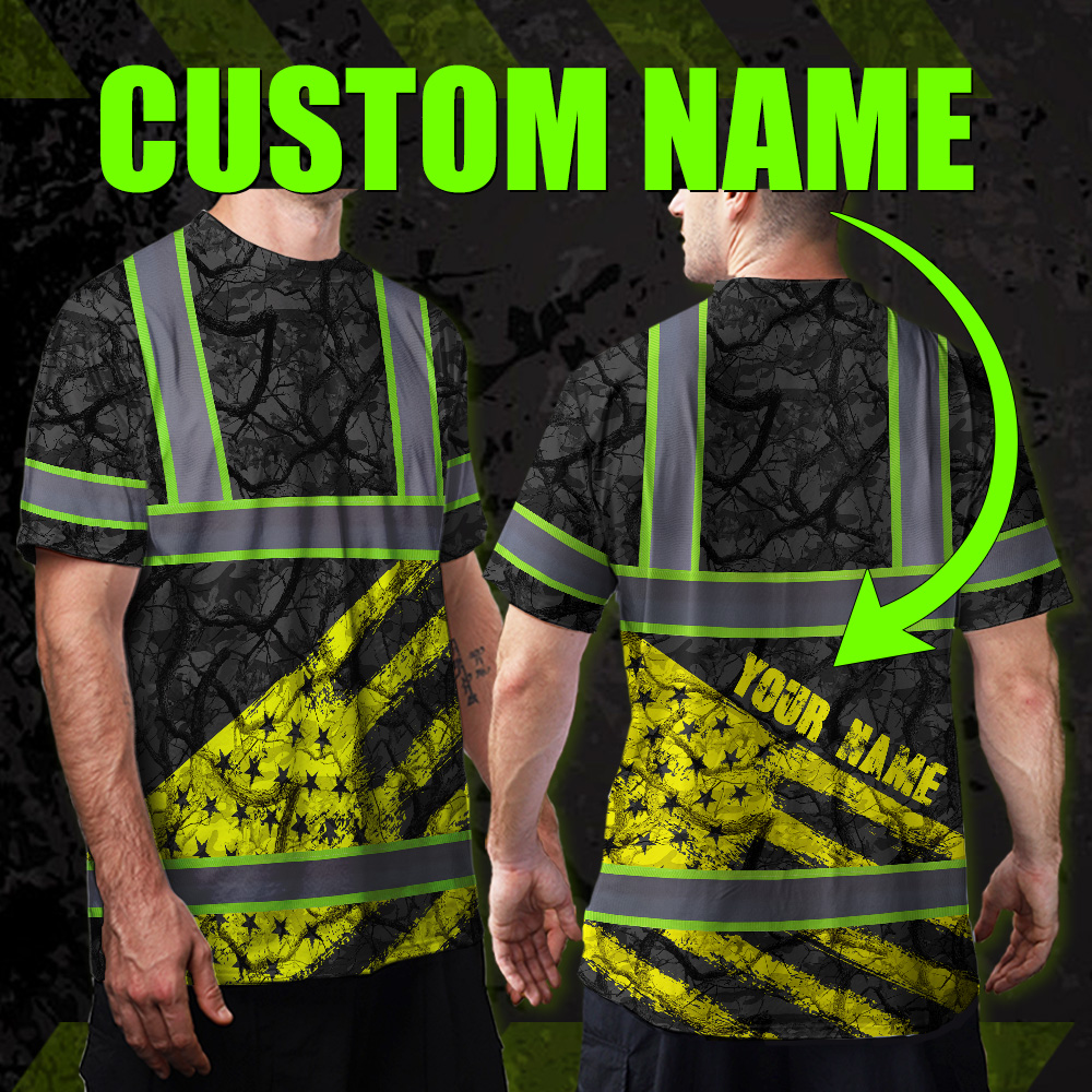 Hi Vis Shirt Reflective Tapes Yellow Camo Neon US Flag Custom Name