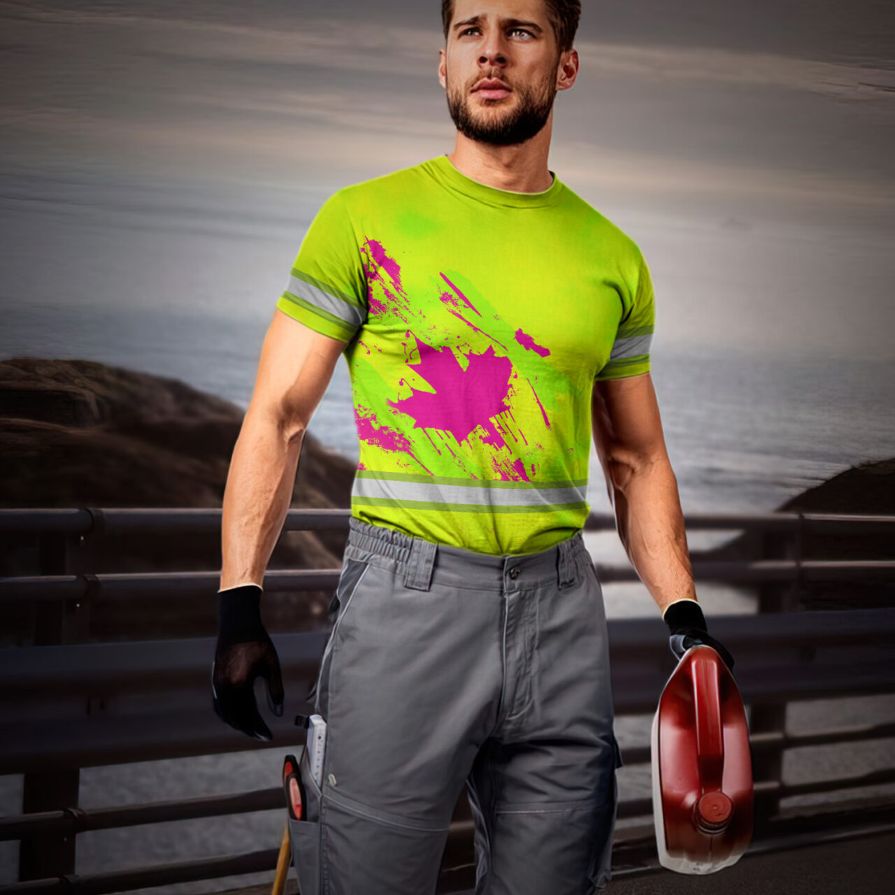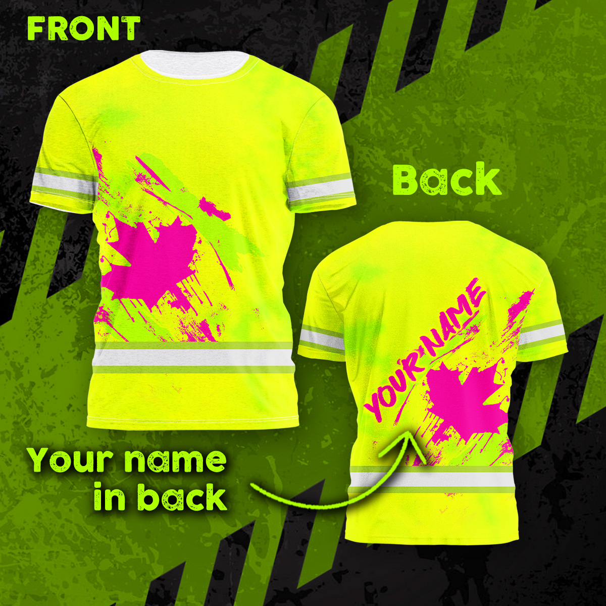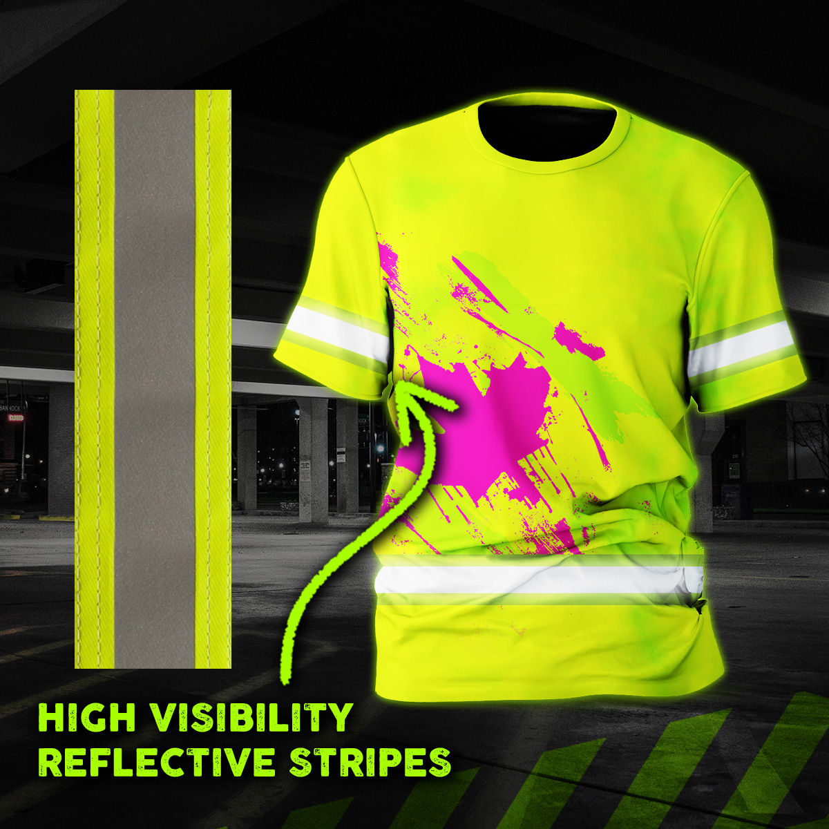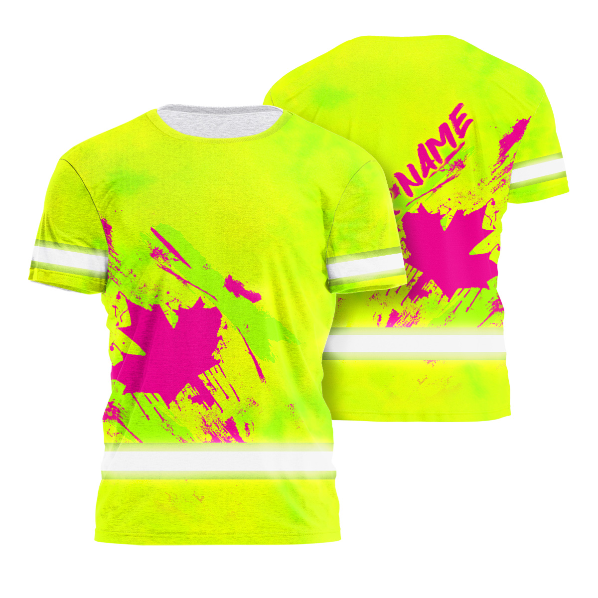 Hi Vis Shirt Reflective Tapes Yellow Neon And Pink Canada Flag