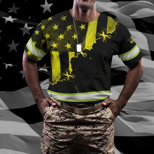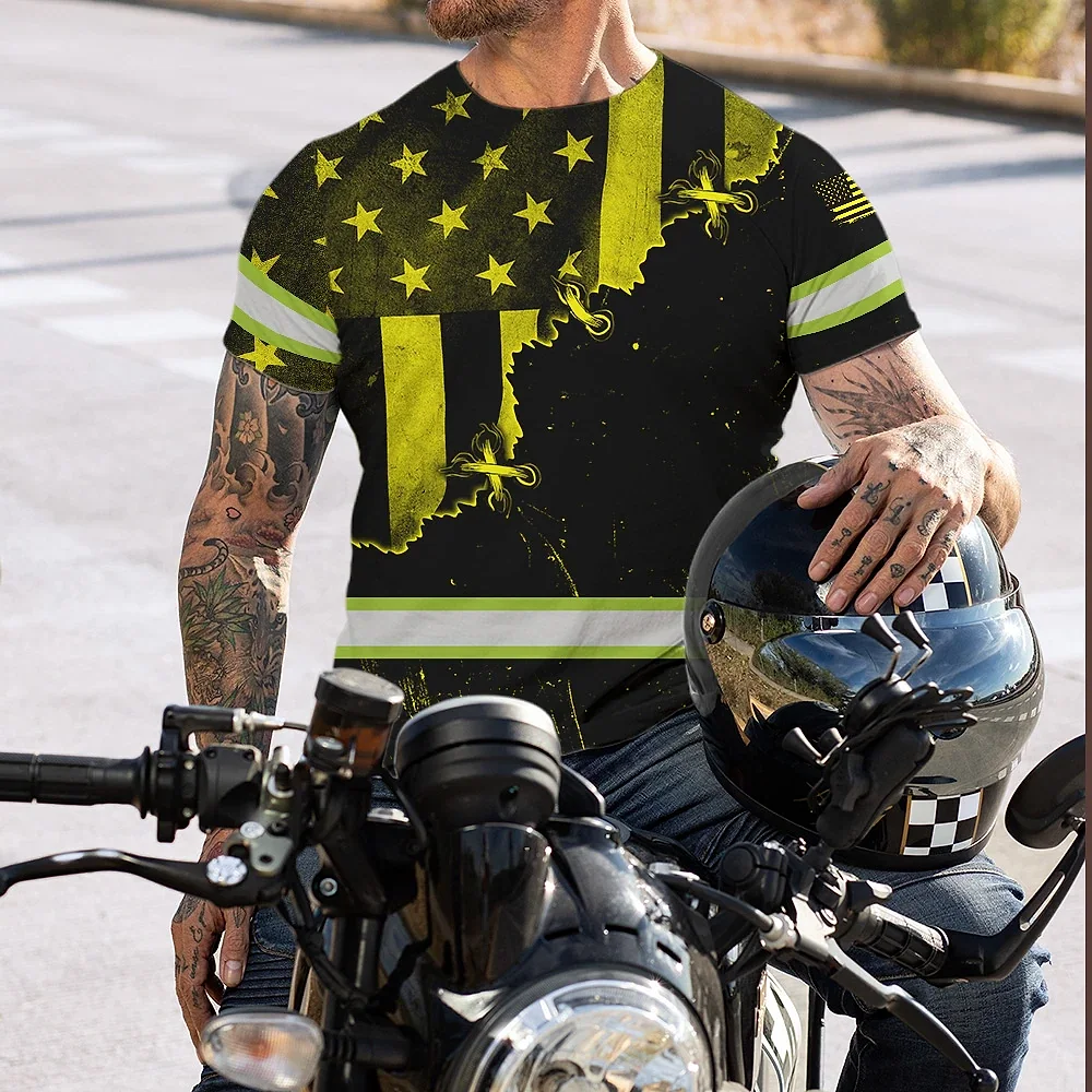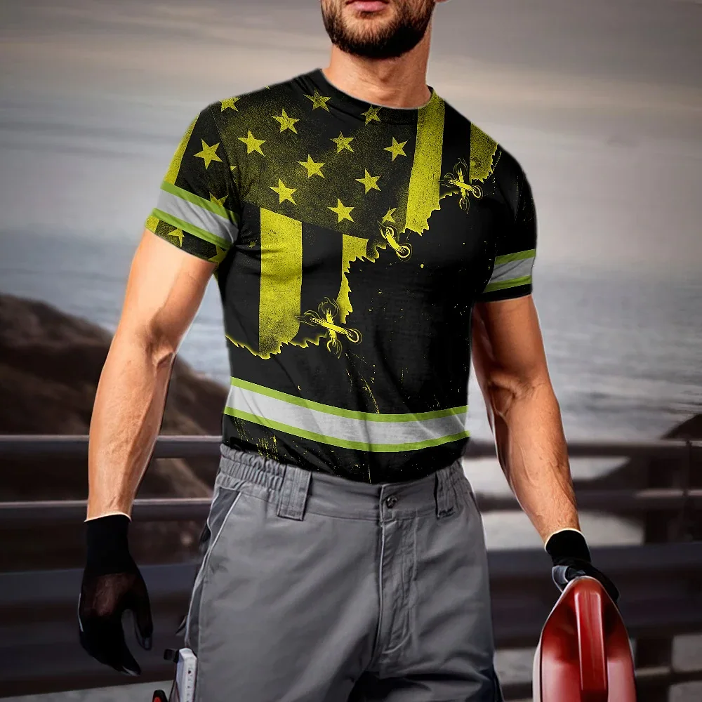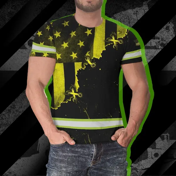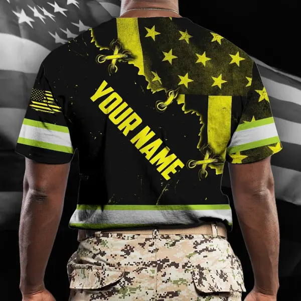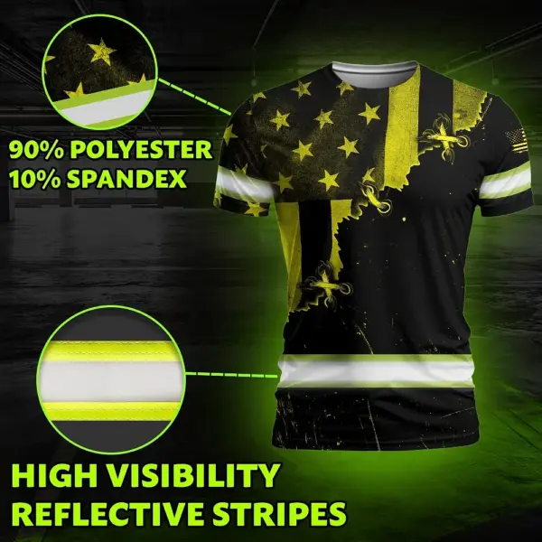 Hi Vis Shirt Reflective Tapes Yellow Neon US Flag Sewn Custom Name Safety Workwear For Workers, Runners