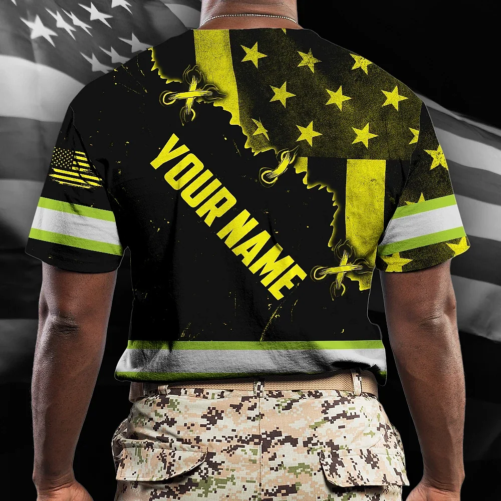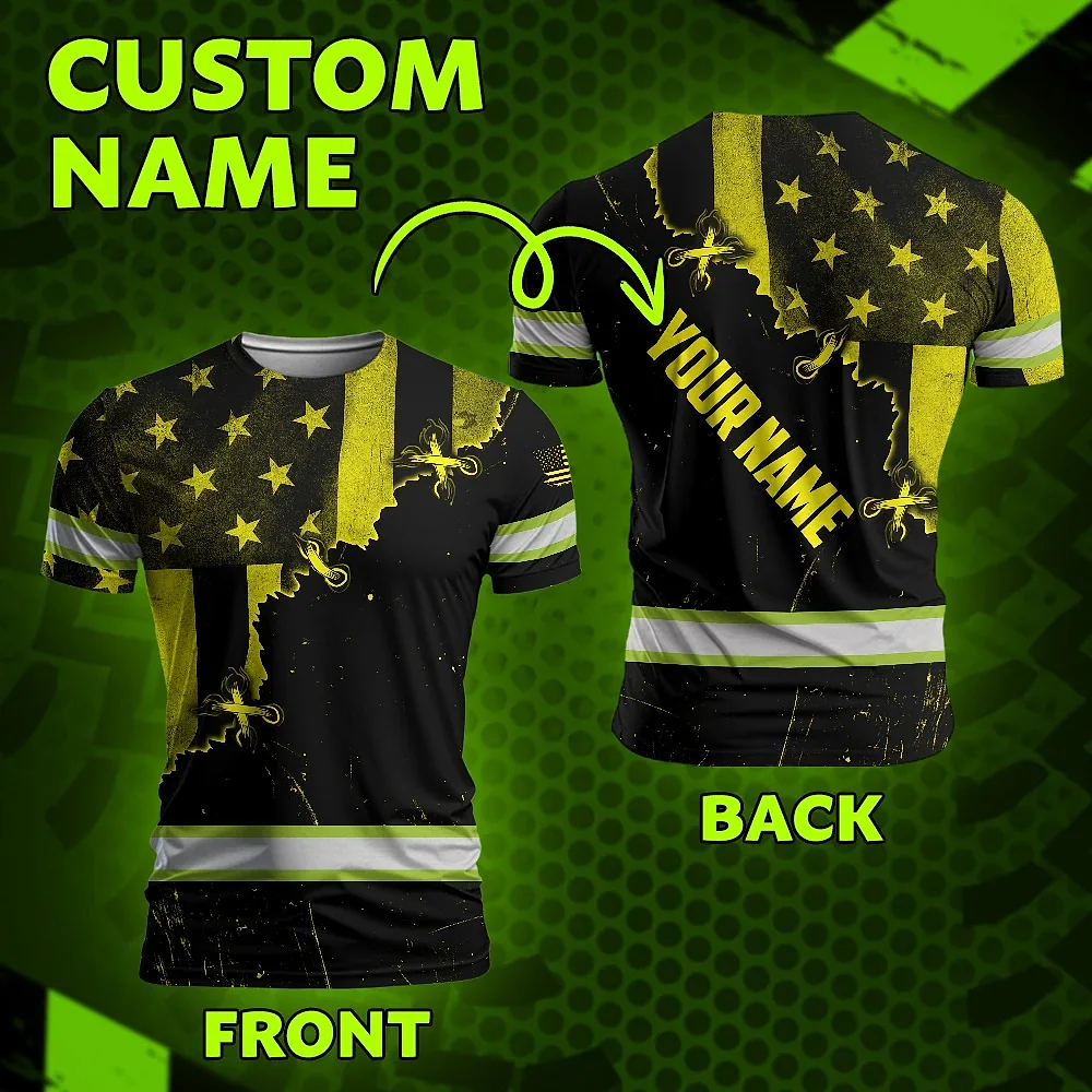 Be the first to review “Hi Vis Shirt Reflective Tapes Yellow Neon US Flag Sewn Custom Name Safety Workwear For Workers, Runners”