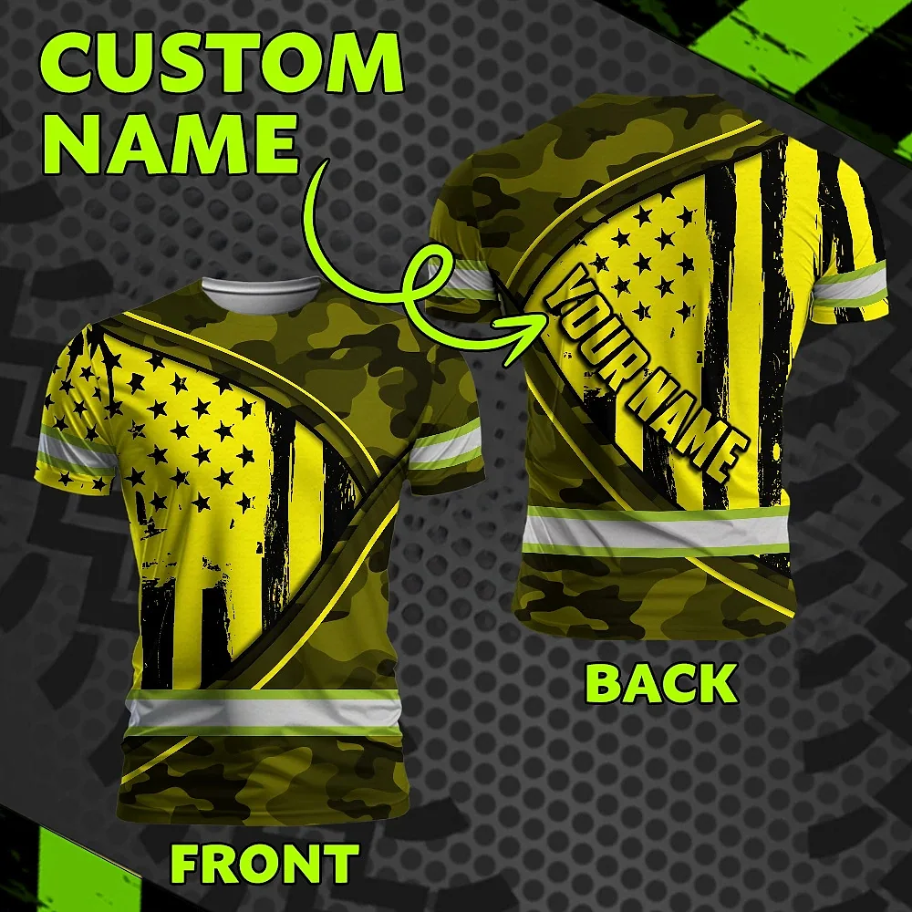 Select options This product has multiple variants. The options may be chosen on the product pageGreen Hi Vis Shirts Reflective Safety Work Tshirt Custom Neon American Flag Design
