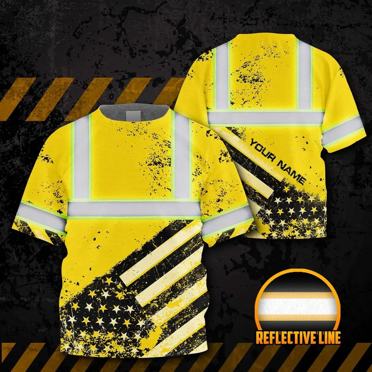 Hi Vis Shirt Reflective Tapes Yellow US Flag Paint Custom Name For Kids