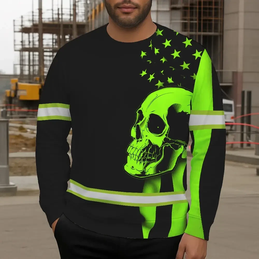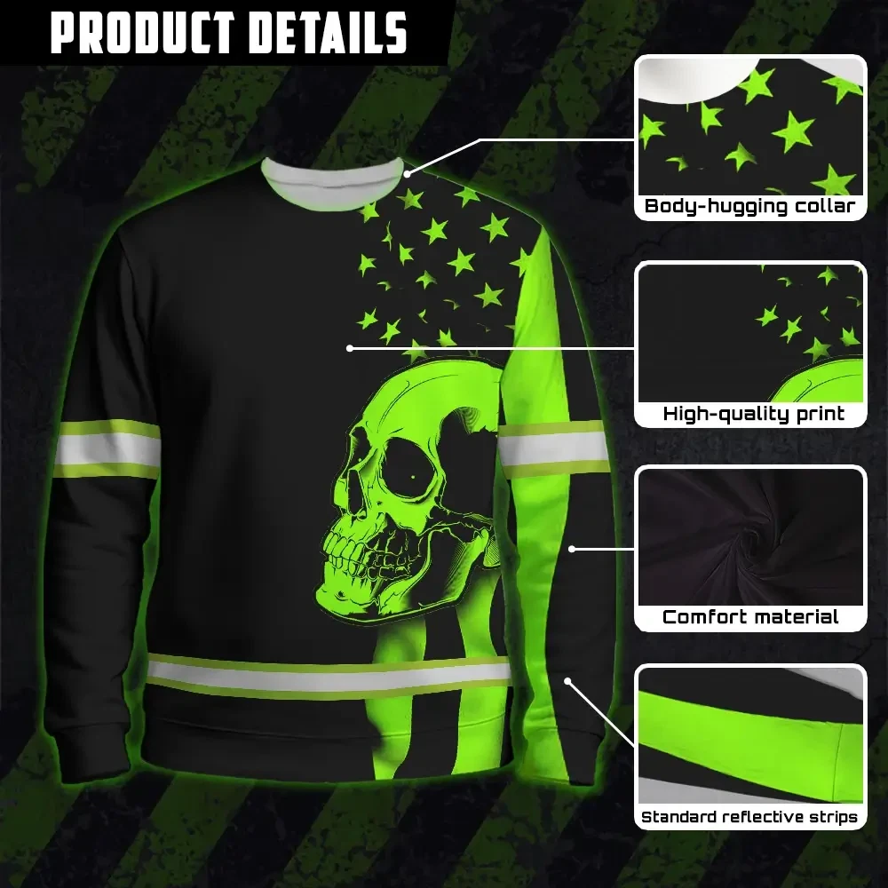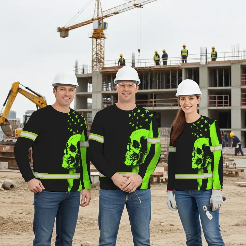 Hi Vis Shirt Skull USA Flag Orange Reflective High Visibility Custom Name Safety Workwear 53