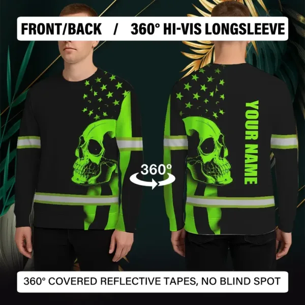 Select options This product has multiple variants. The options may be chosen on the product pageHi Vis Long Sleeve Shirt Skull USA Flag Custom Name Safety Workwear American Flag Neon Purple