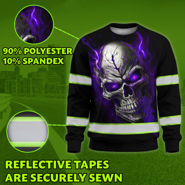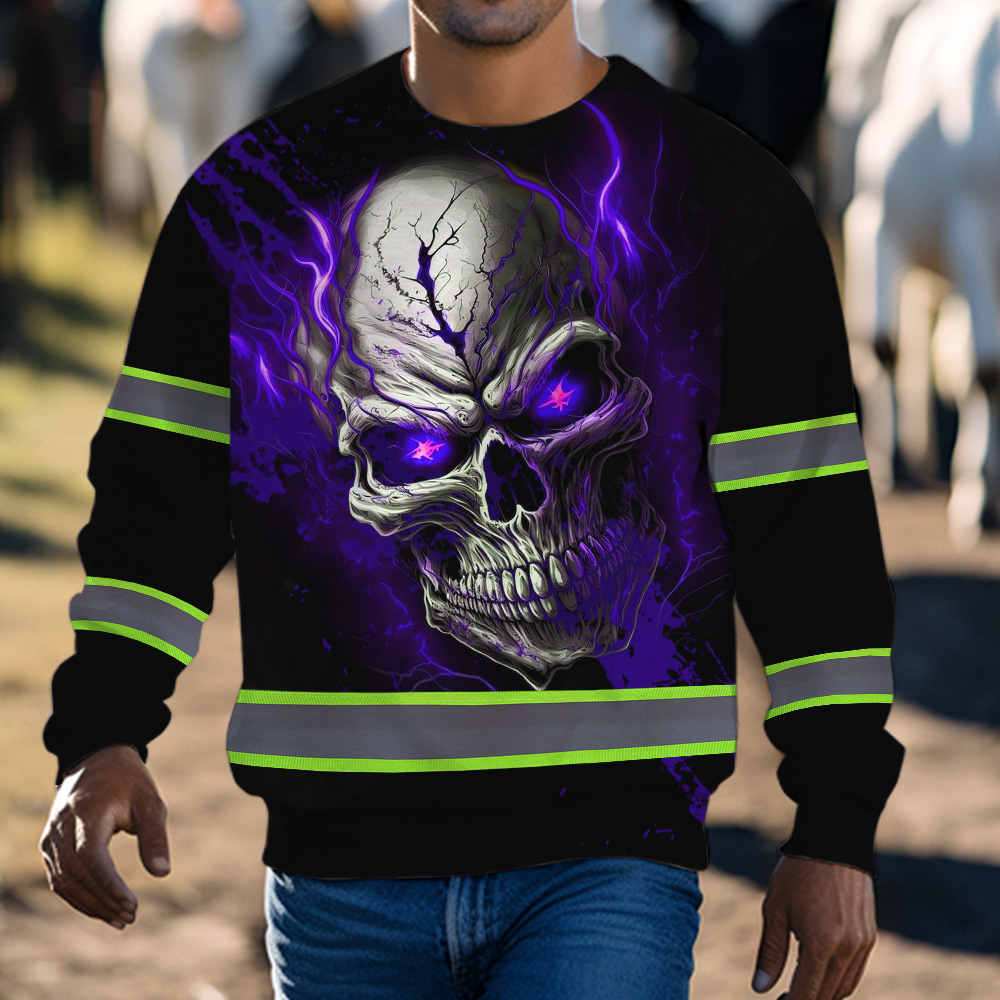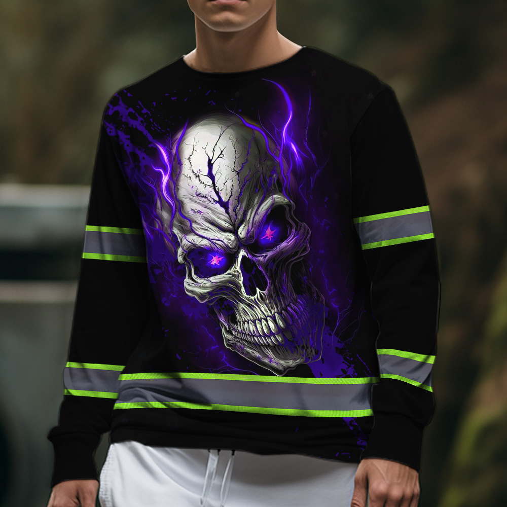 Hi Vis Shirts Long Sleeve Black Reflective Skull Violet Neon Safety Workwear For Skull Lovers Key Features