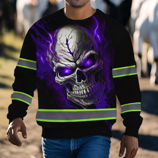 Hi Vis Shirts Long Sleeve Black Reflective Skull Violet Neon Safety Workwear For Skull Lovers