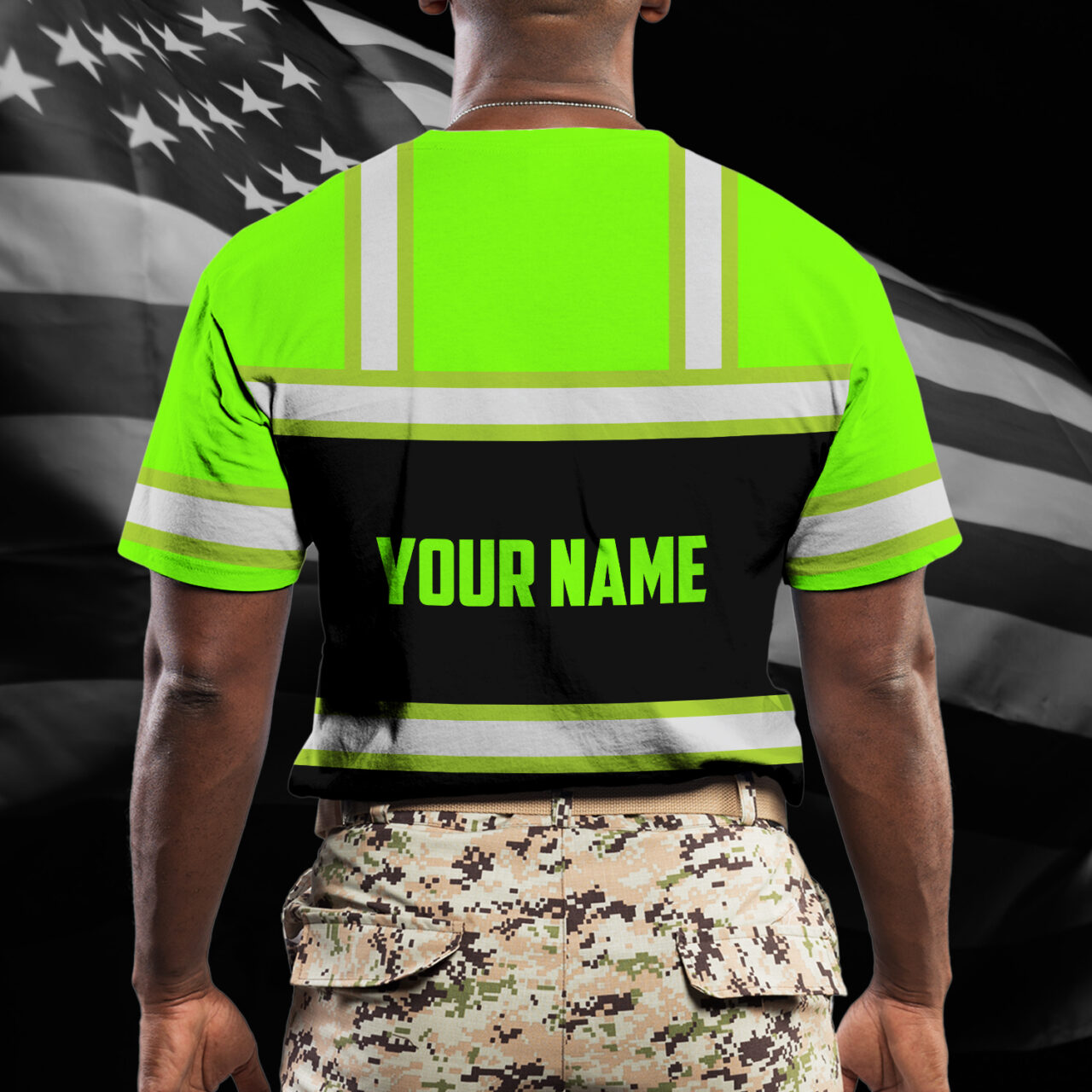 Select options This product has multiple variants. The options may be chosen on the product pageGreen Hi Vis Shirts Reflective Safety Work Tshirt Custom Neon American Flag Design