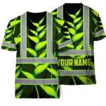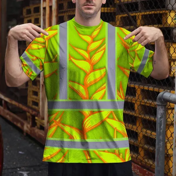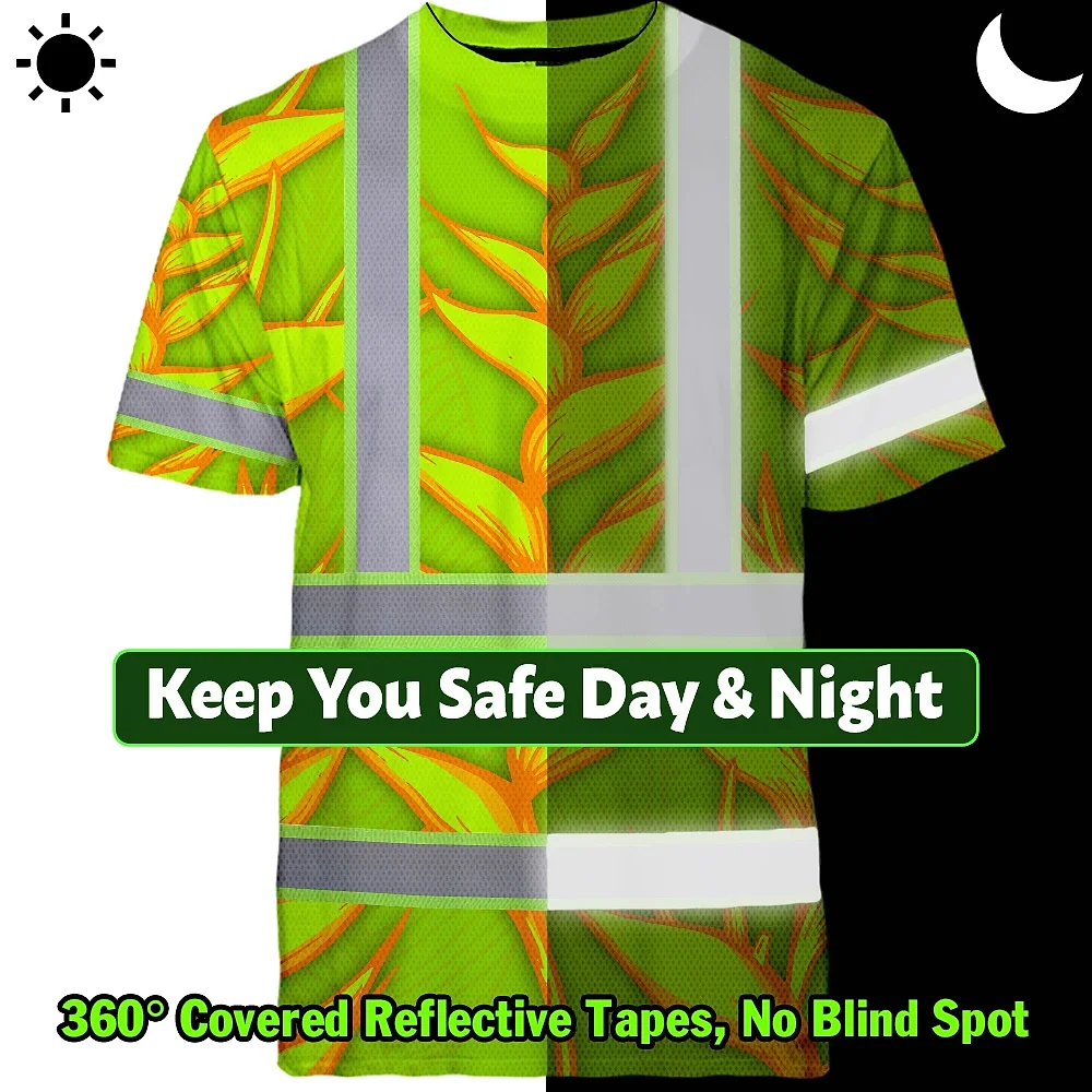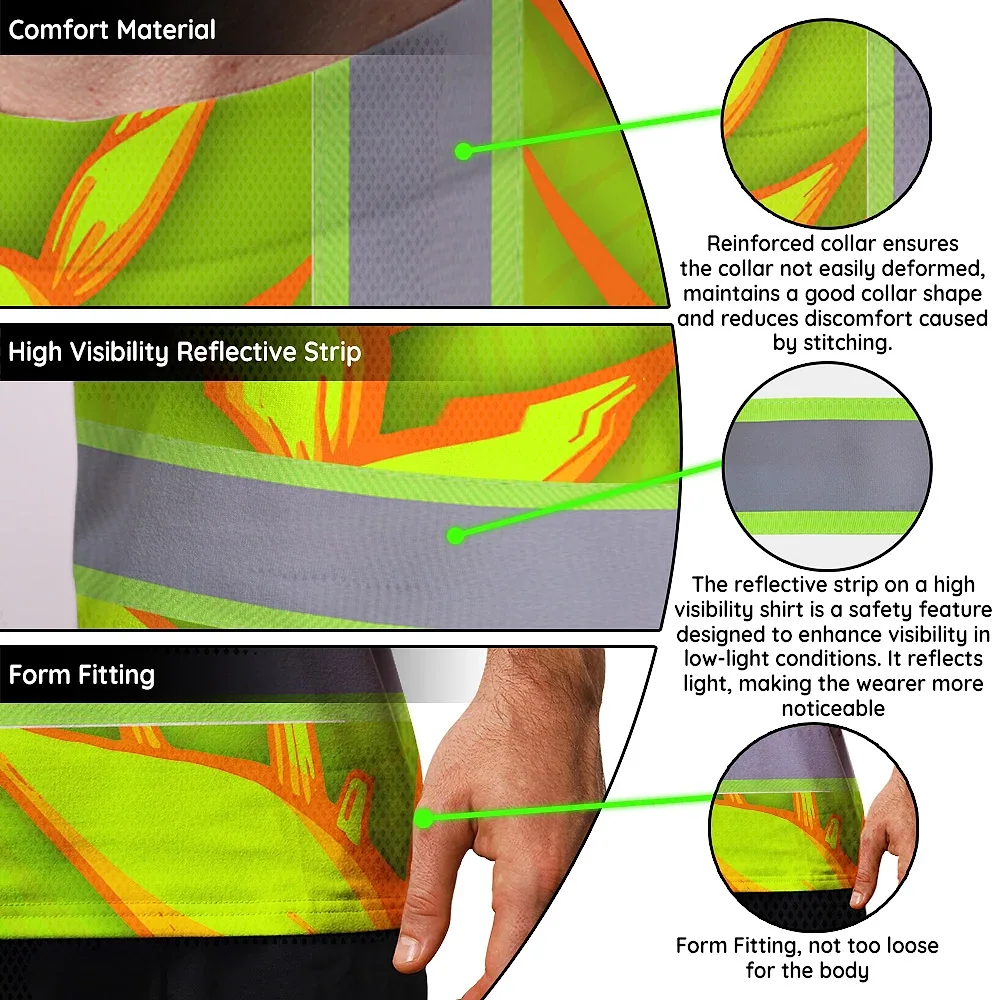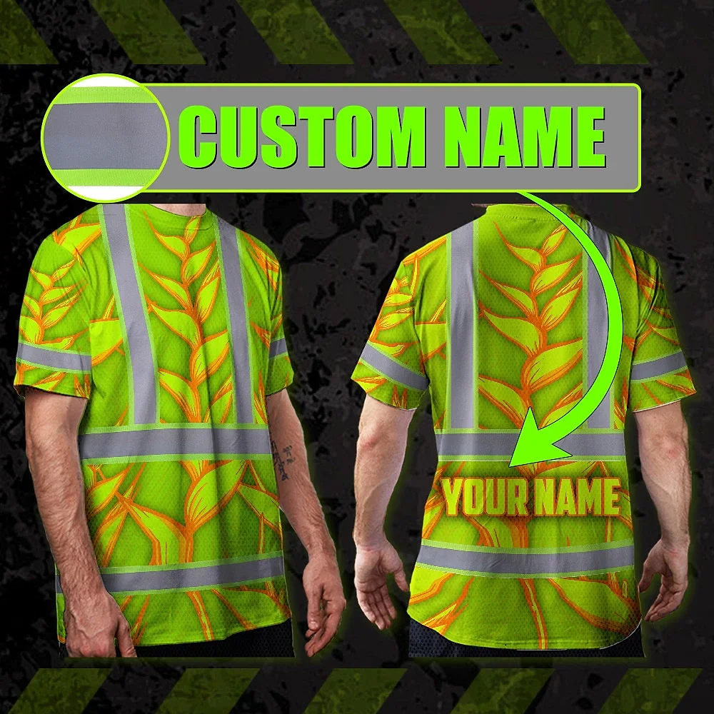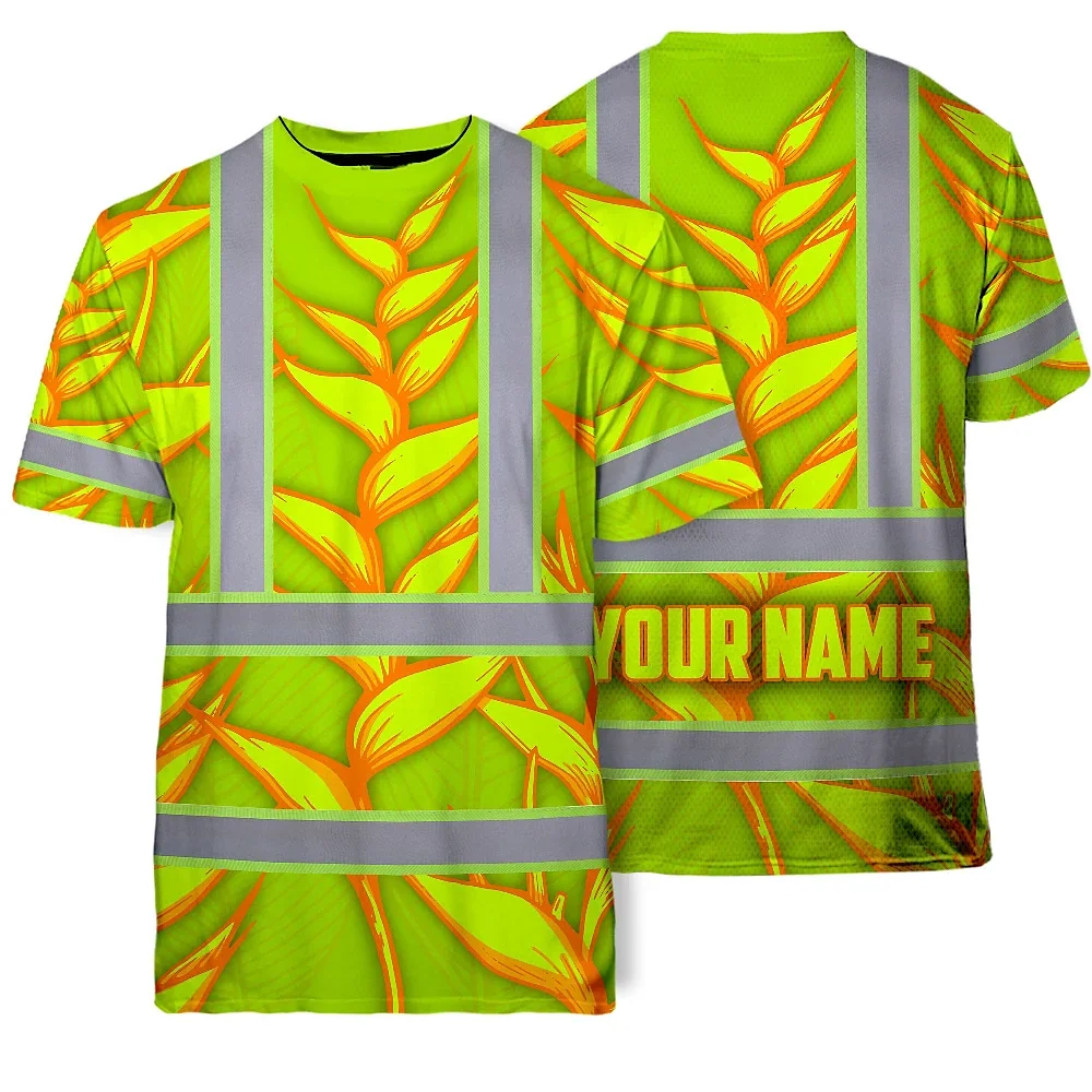 Hi Vis T Shirt Reflective Tapes Orange Neon Lime Heliconia Custom Name Safety Workwear For Workers, Truckers, Operators