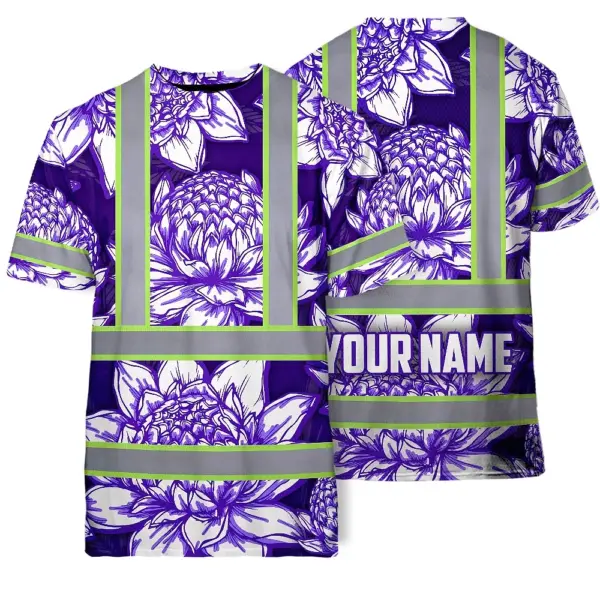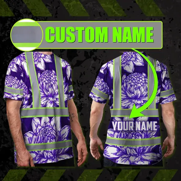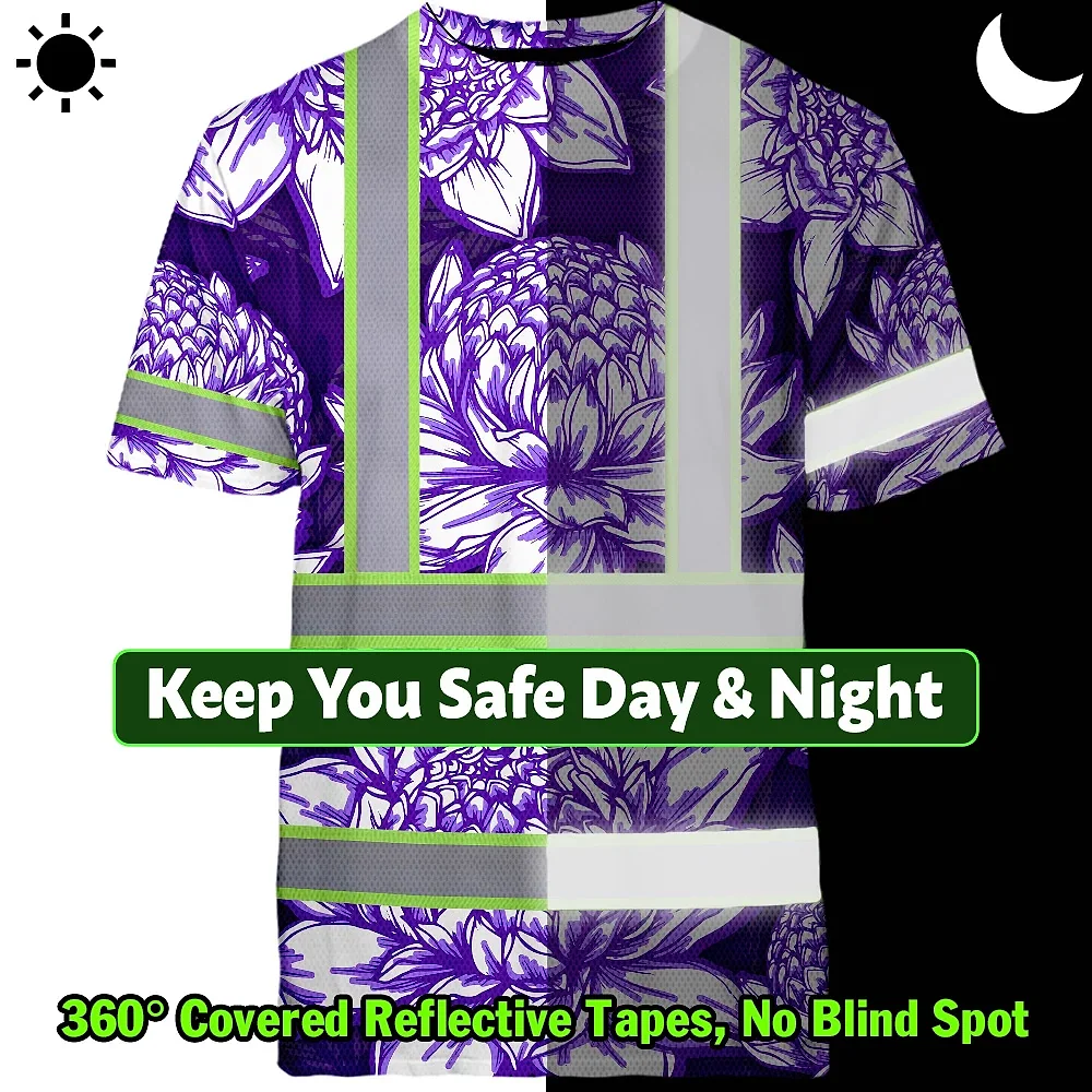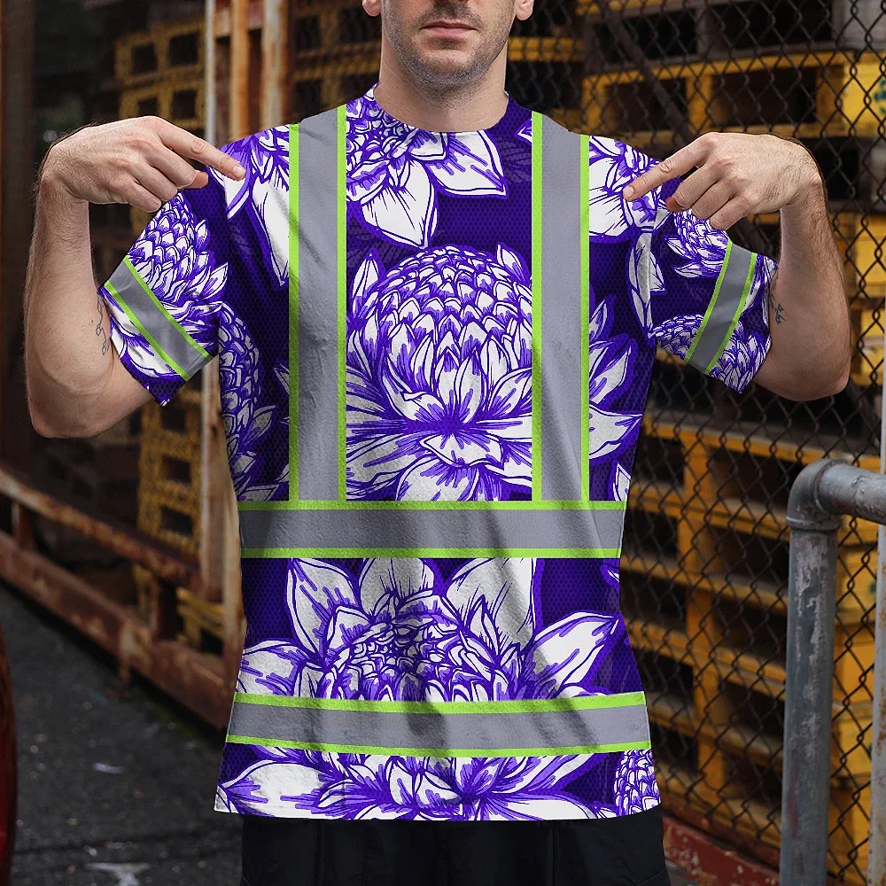 Be the first to review “Hi Vis T Shirt Reflective Tapes Violet Neon White Protea Custom Name Safety Workwear For Workers, Truckers, Operators”