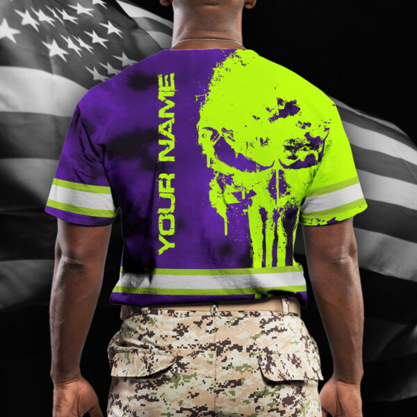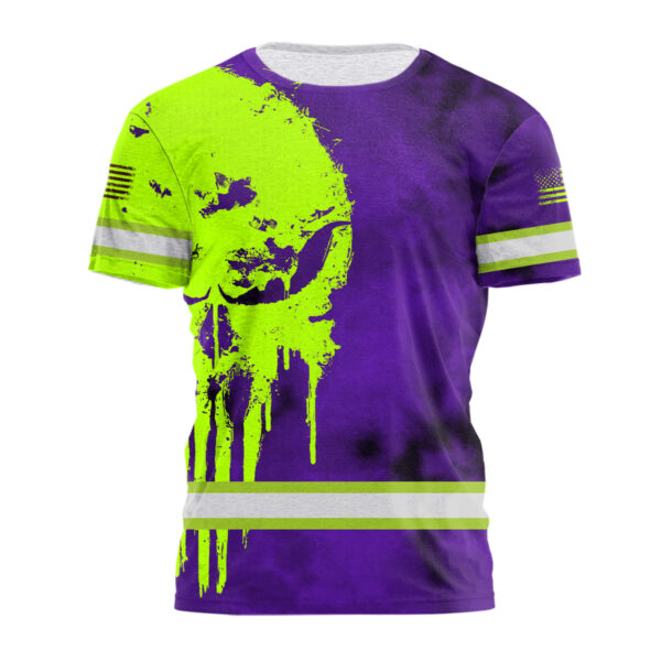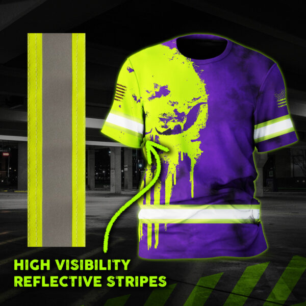 Be the first to review “Hi Vis T Shirt Skull Navy Neon Custom Name Violet Reflective Skull Green Neon Custom Name”