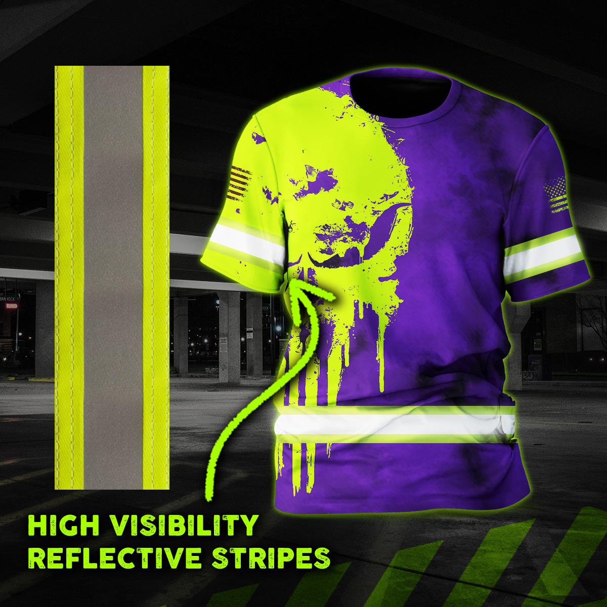 Hi Vis T Shirt Skull Navy Neon Custom Name Violet Reflective Skull Green Neon Custom Name
