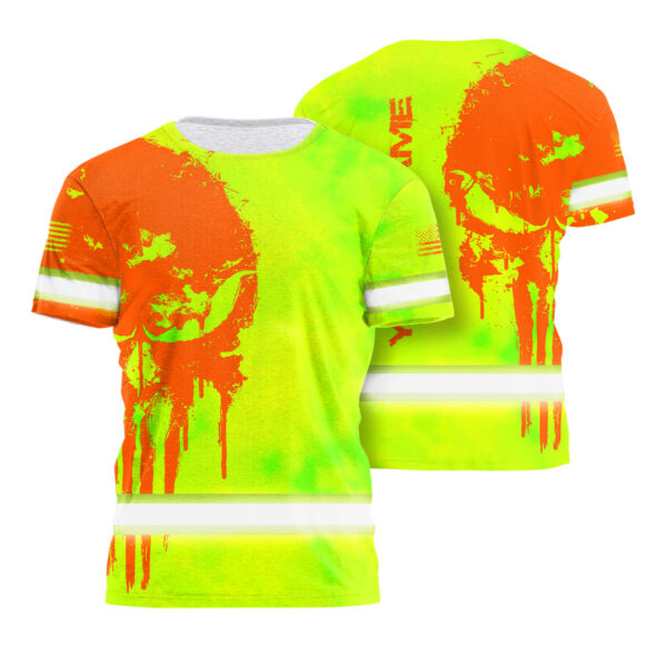 Hi Vis T Shirt Skull Orange Neon Custom Name For Workers, Skull Lover
