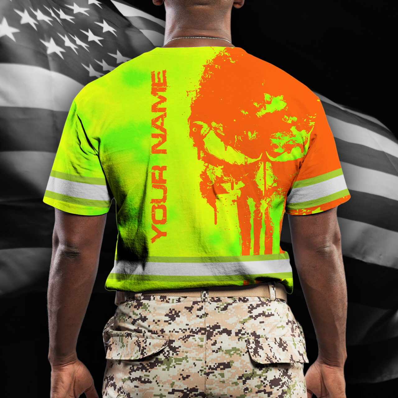 Select options This product has multiple variants. The options may be chosen on the product pageHi Vis Shirt Reflective Skull With US Flag Custom Name Safety Workwear For Skull Lover