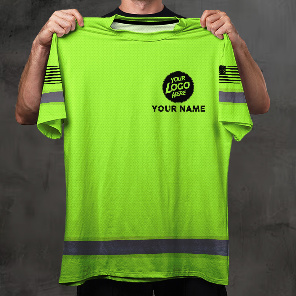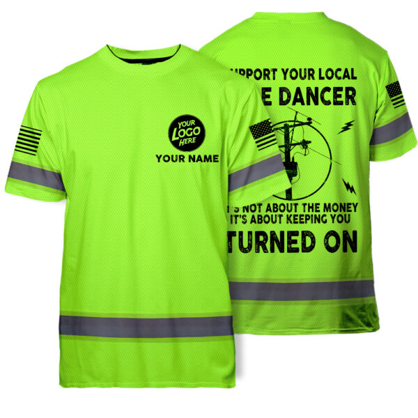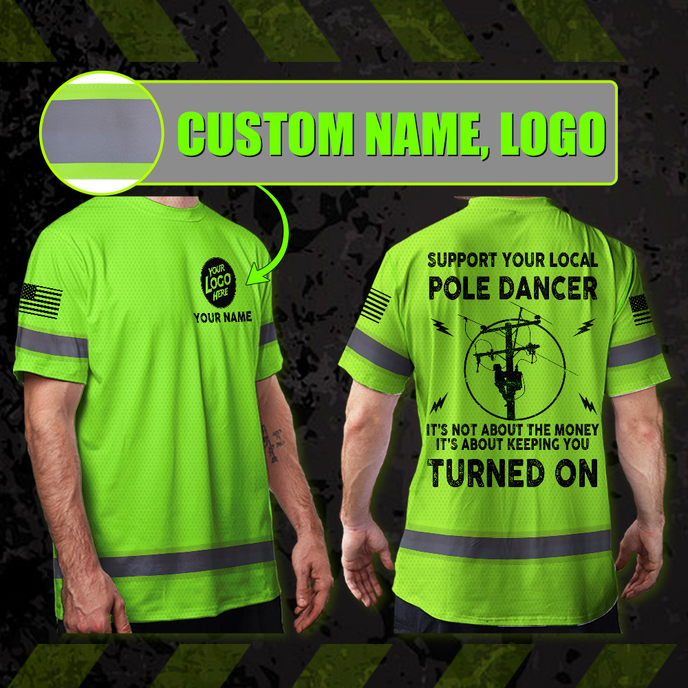 Hi Vis Tee Shirt Lineman Support Local Custom Name Logo Company Safety Workwear Reflective Short Sleeve For Electrician, Hi Vis Shirts Funny