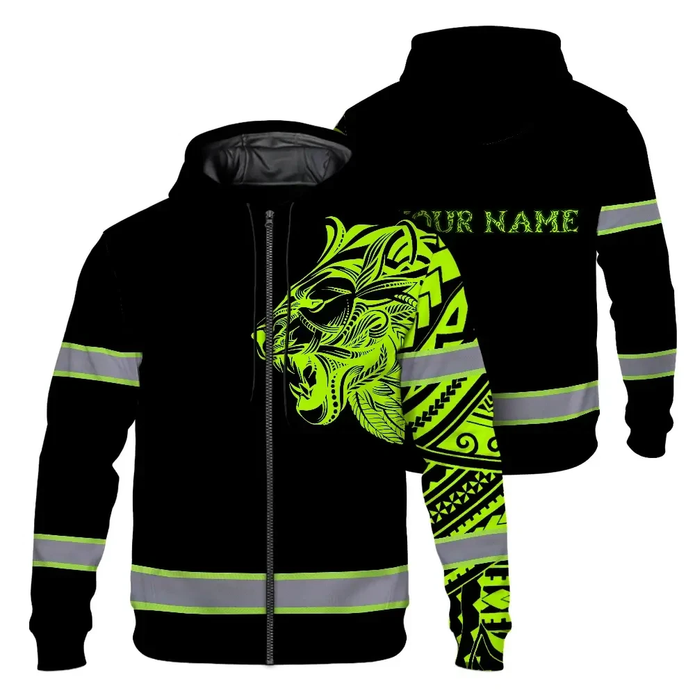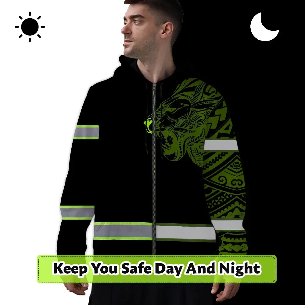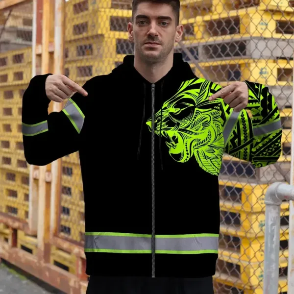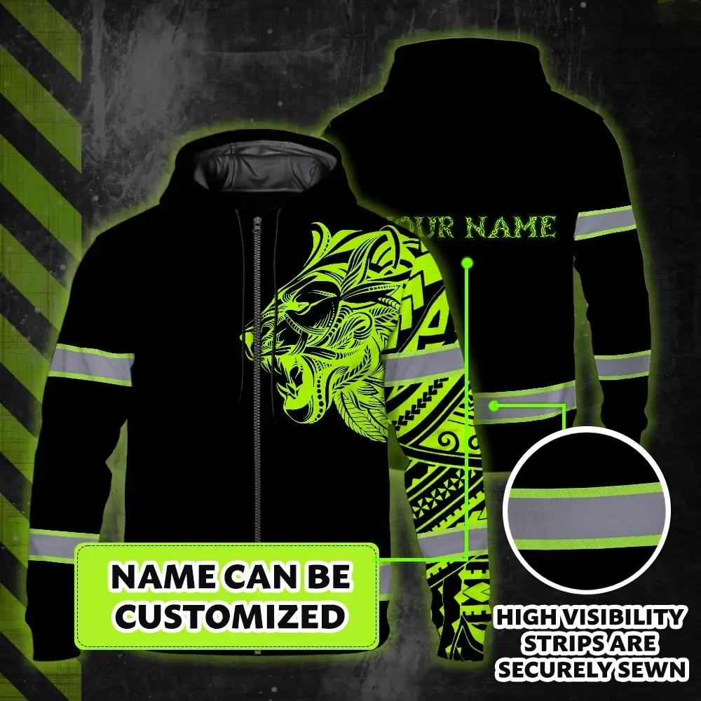 Hi Vis Zip Hoodie Reflective Tapes Lion Hawaiian Polynesian Tribal Custom Name