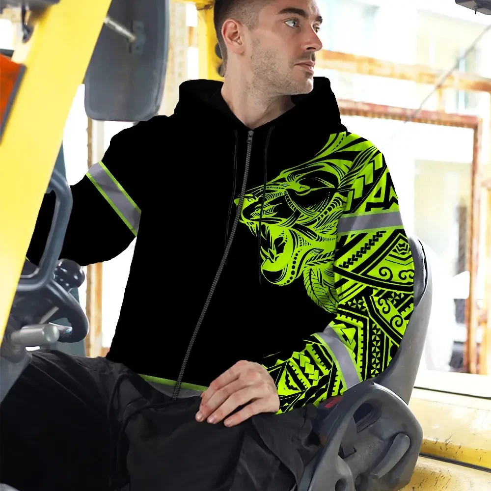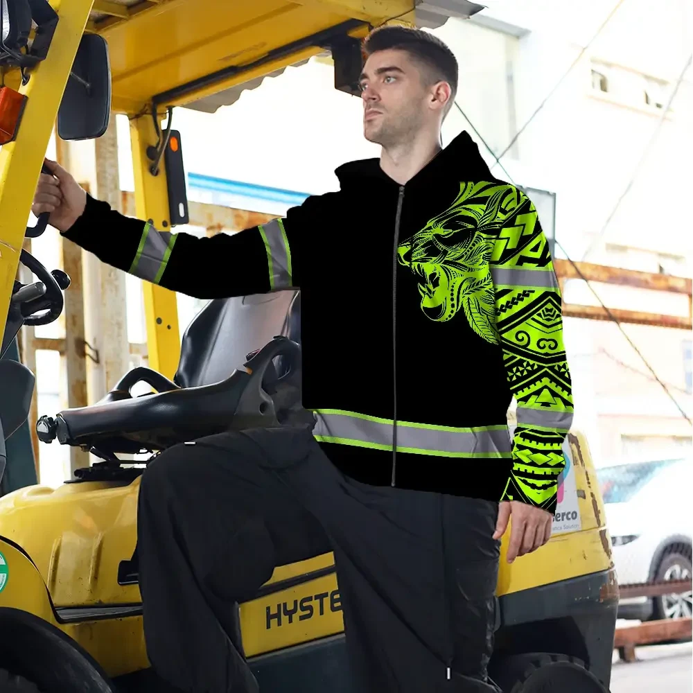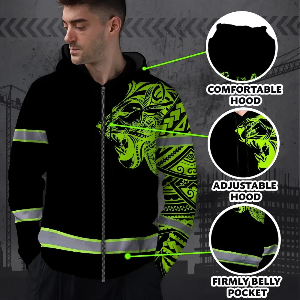 Hi Vis Zip Hoodie Reflective Tapes Lion Hawaiian Polynesian Tribal Custom Name
