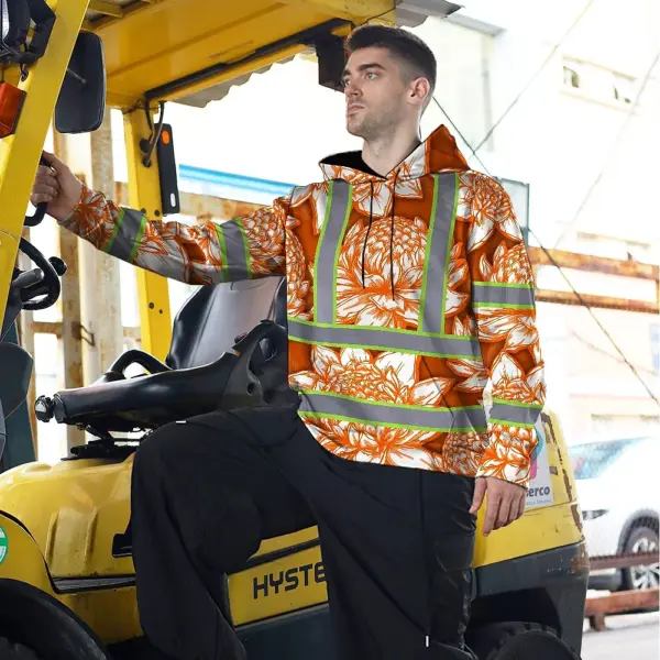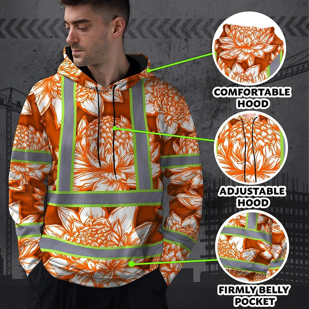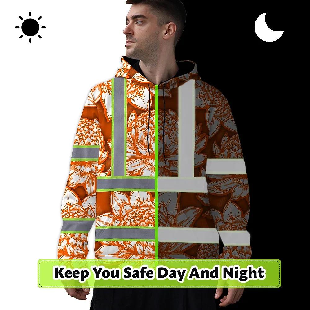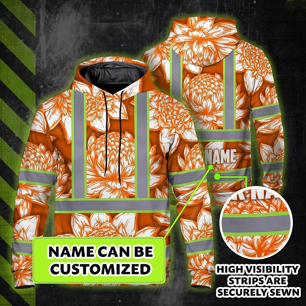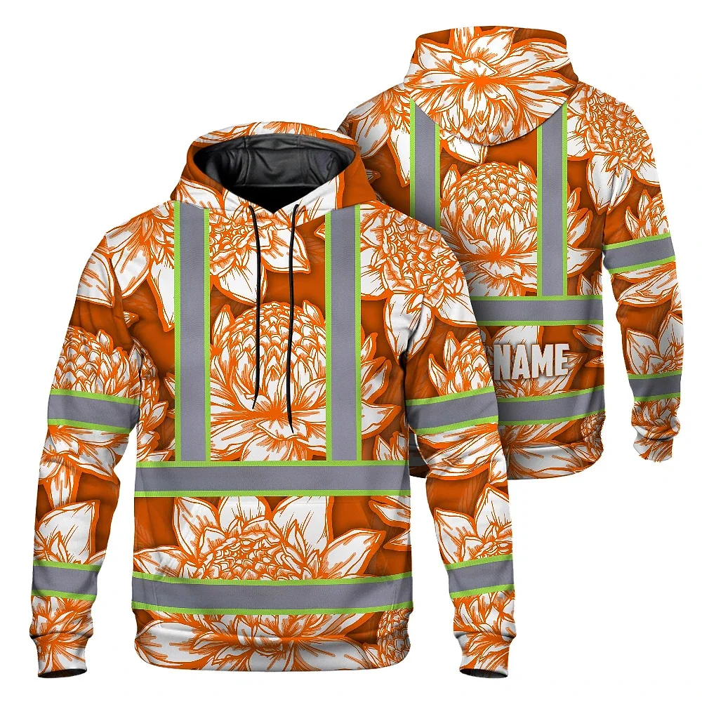 Hi Vis Zip Hoodie Reflective Tapes Orange Neon White Protea Custom Name Safety Workwear For Workers, Truckers, Operators