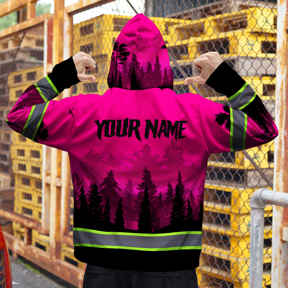 Select options This product has multiple variants. The options may be chosen on the product pageHi Vis Zip Hoodie Reflective Tapes Pink Violet Flag Custom Name