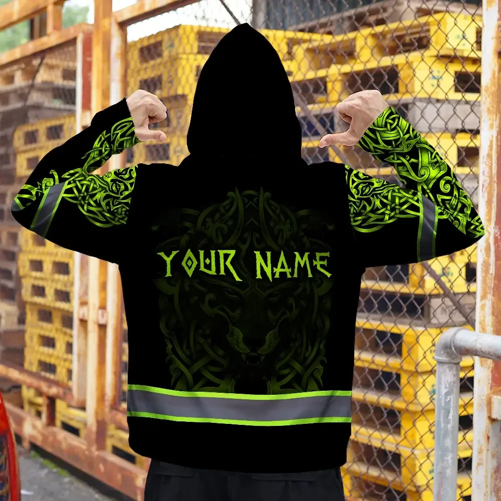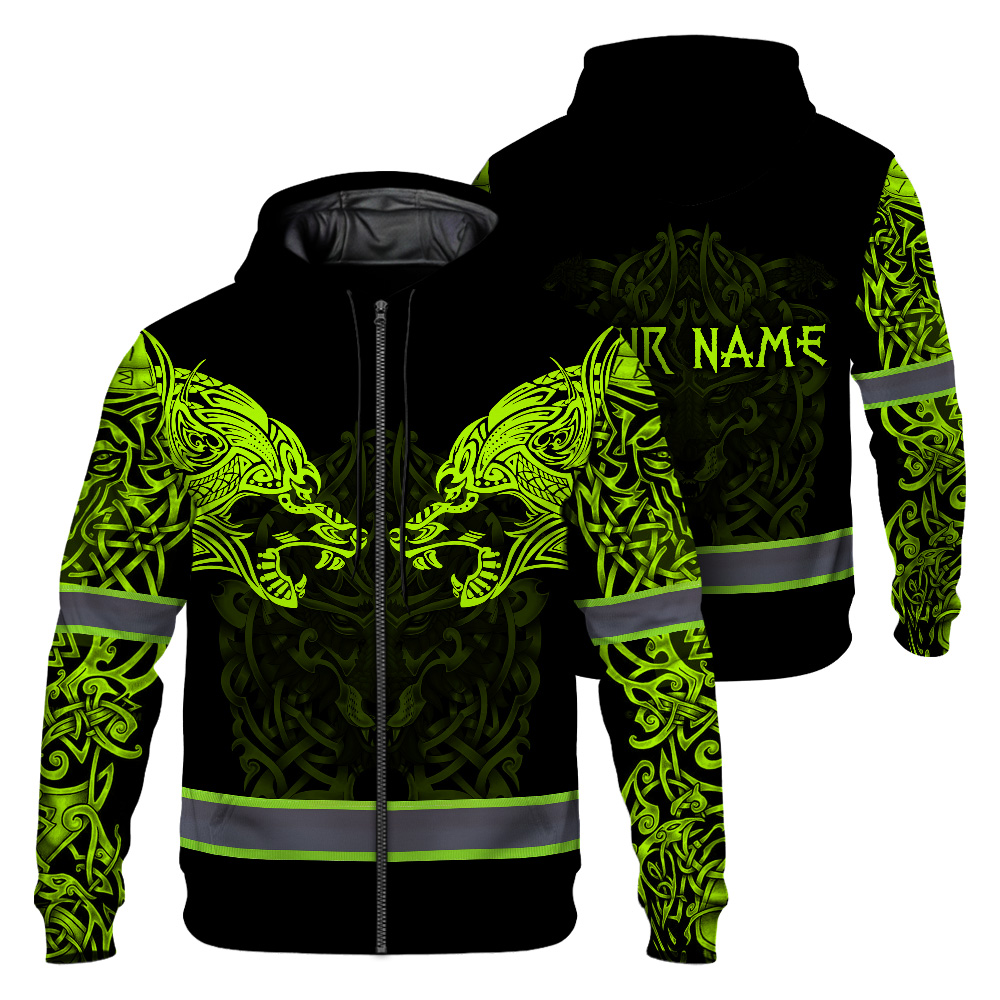 Hi Vis Zip Hoodie Reflective Tapes Vikings Wolf Custom Name Safety Workwear