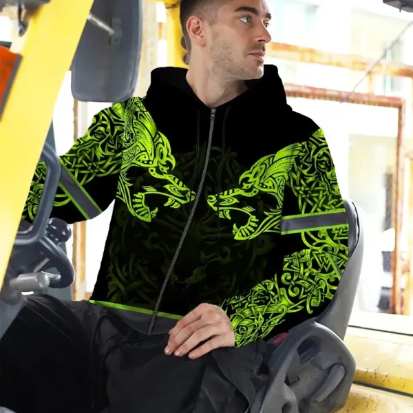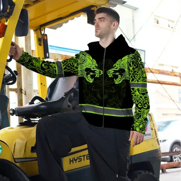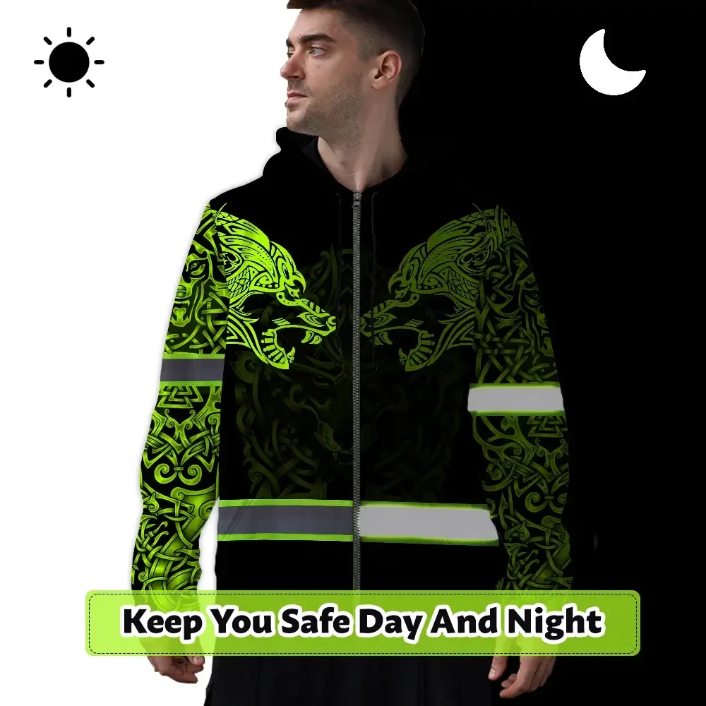 Hi Vis Zip Hoodie Reflective Tapes Vikings Wolf Custom Name Safety Workwear Key Features